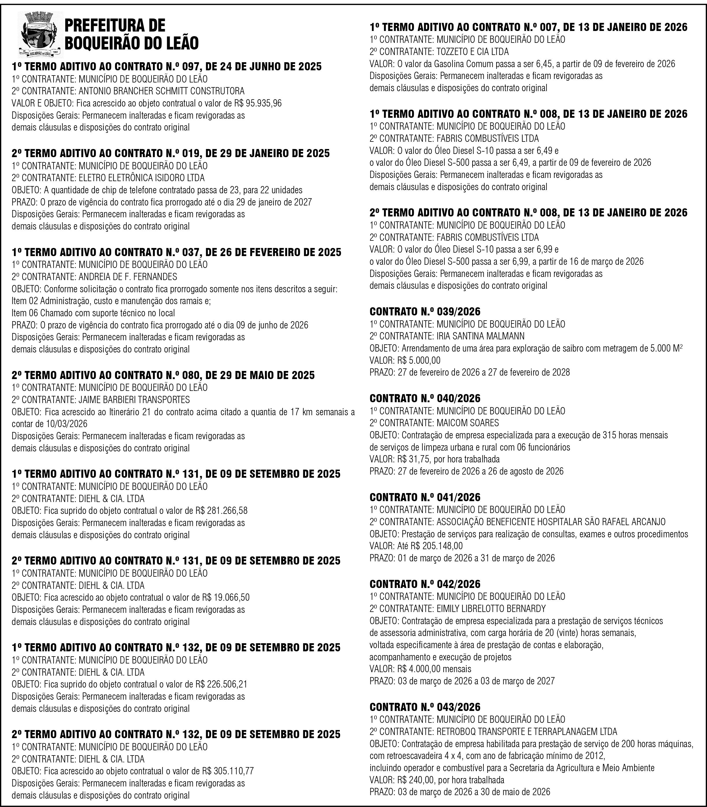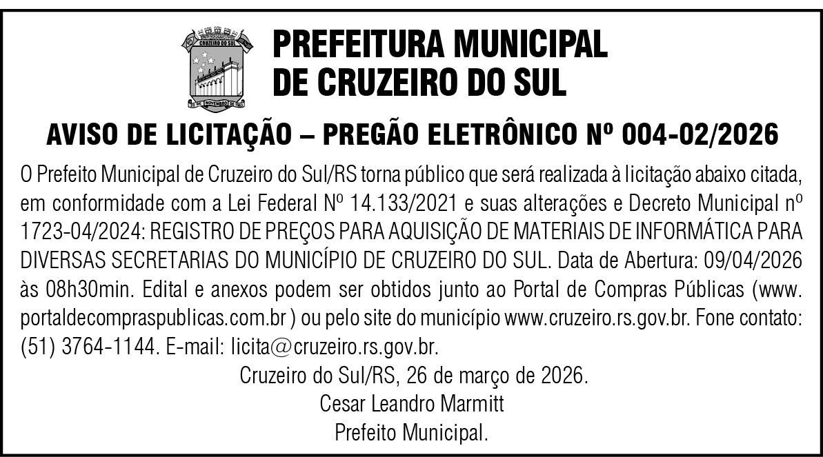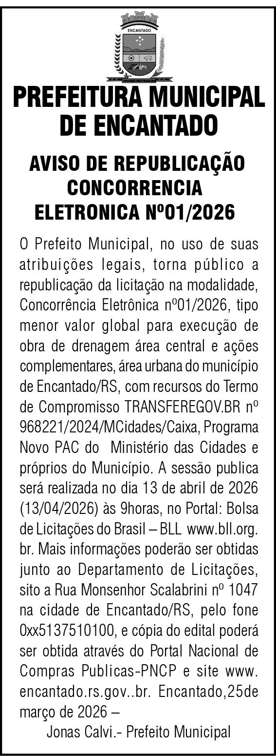 • Liderada pela empresária Raquel Cadore, a diretoria executiva da Associação Comercial e Industrial de Encantado (ACI-E) tem quatro nomes novos em 2026. No administrativo, assume Tiago Dartora, da Vinilady; nos núcleos, Évili Osterkamp, do Sicredi Região dos Vales; na área da indústria, Leonardo Figueró, da Baldo SA; e no setor de comércio e varejo, Luciana Hollmann, da Clip Tabacaria.