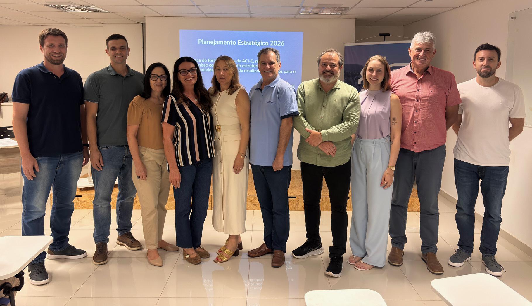 mento pensado para os próximos 10 anos, com foco no fortalecimento da entidade e no desenvolvimento local”, pontuou. Para o próximo ciclo, a ACI-E definiu seis pilares estratégicos: crescimento associativo, padronização de processos, representatividade, sustentabilidade financeira, fortalecimento institucional e melhorias estruturais. A proposta é ampliar a atuação