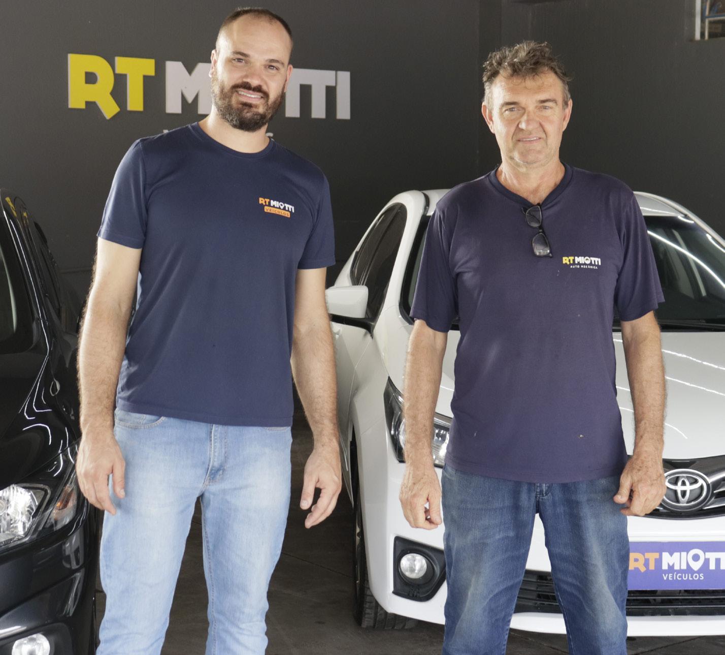 A RT Miotti Veículos nasceu quando Tiago tinha por volta de 13 ou 14 anos, ao lado do pai, que era funileiro e mecânico. O que começou como uma oficina foi crescendo: vieram novos pavilhões, depois a loja de veículos, e hoje a operação divide o atendimento entre clientes de Muçum e de toda a região do Vale do Taquari, com cerca de metade das vendas feitas fora do município.