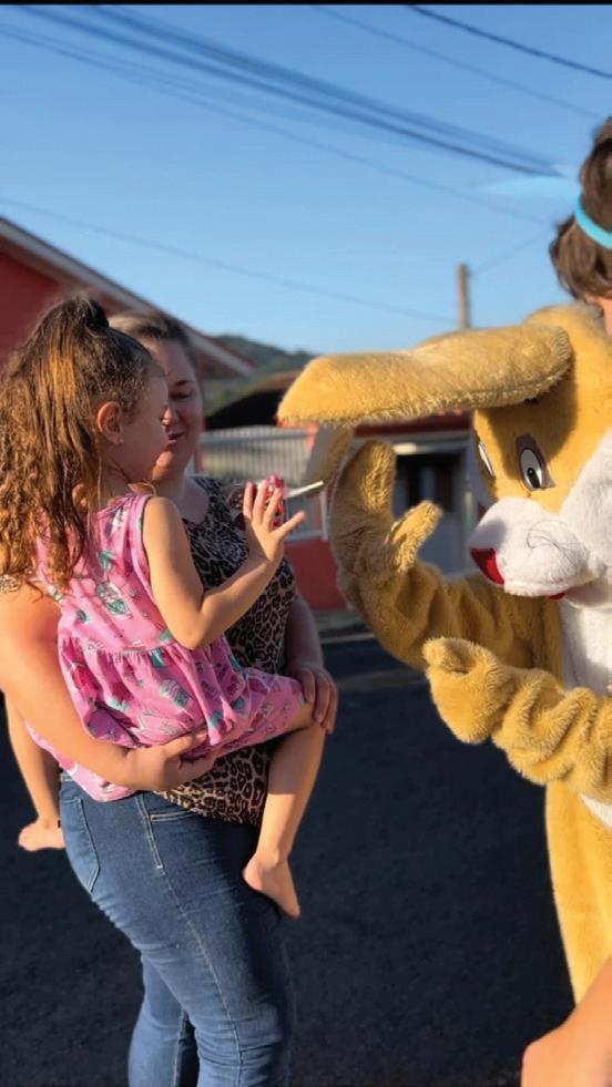 Oquecomeçoucomo umapequenaação dearrecadaçãode mantimentos durante as enchentes de 2020 se transformounogrupo de voluntariado“Doar FazBem”.Criadopelo teutonienseVítorKrieger, hojecom18anos,oprojeto reúnevoluntáriospara promovereparticipar de iniciativas solidárias dentroeforadomunicípio. Apesardapoucaidade, Kriegera rmaquefundar ogrupofoiarealização de um sonho. Em abril, osvoluntáriospreparam umaaçãodePáscoaem Teutônia e Paverama, com entregadepacotinhosde presenteparacrianças