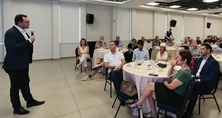 Prefeito de Bento Gonçalves palestrou ontem durante reunião-almoço da Acil, em Lajeado. Entre os resultados compartilhados, cerca de 10% dos que deixaram o programa assistencial, ingressaram no mercado de trabalho formal.