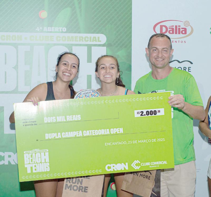 A principal contou com atletas profissionais, com pontuação no ranking mundial, entre eles, Natã Porte, número 40 do mundo, e Isadora Truzs, líder do ranking gaúcho e 28 do mundo. Na Open, os campeões foram o encantadense Arthur Tramontini e Gabriel Katzer, que levaram o prêmio de R$ 2 mil. Eles superaram na final Lucca Almeida e Rafael Luzzi. “Sempre foi um sonho ganhar esse torneio em casa. Com certeza, foi a competição mais difícil que já venci, pelo nível de jogadores profissionais que participaram. Inesquecível”, comenta Arthur. Coordenador do departamento de beach tennis do CC, Bidu Fiel observa que a competição realizada em Encantado se consagra como a maior do Vale do Taquari. “Somos referência quando se fala em competições de beach tennis na região. Organizamos um evento que se caracteriza por unir família e esporte. Exemplo foi o Leonardo Tramontini, de 60 anos, que jogou com sua filha, a Bia Tramontini, de 12”, comenta.