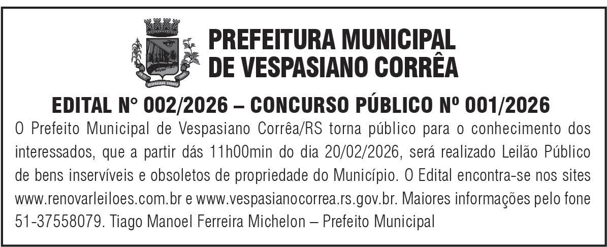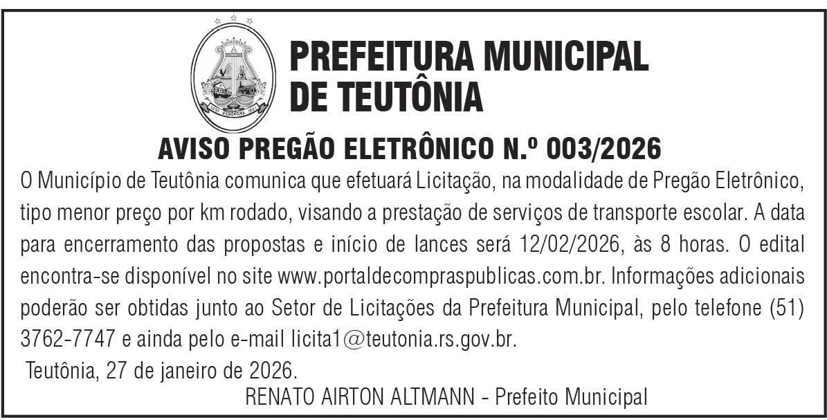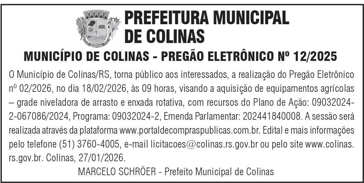 Mais informações podem ser obtidas junto à Prefeitura Municipal de Forquetinha, pelos telefones (51) 3840-0246 ou (51) 9 9283-6382.