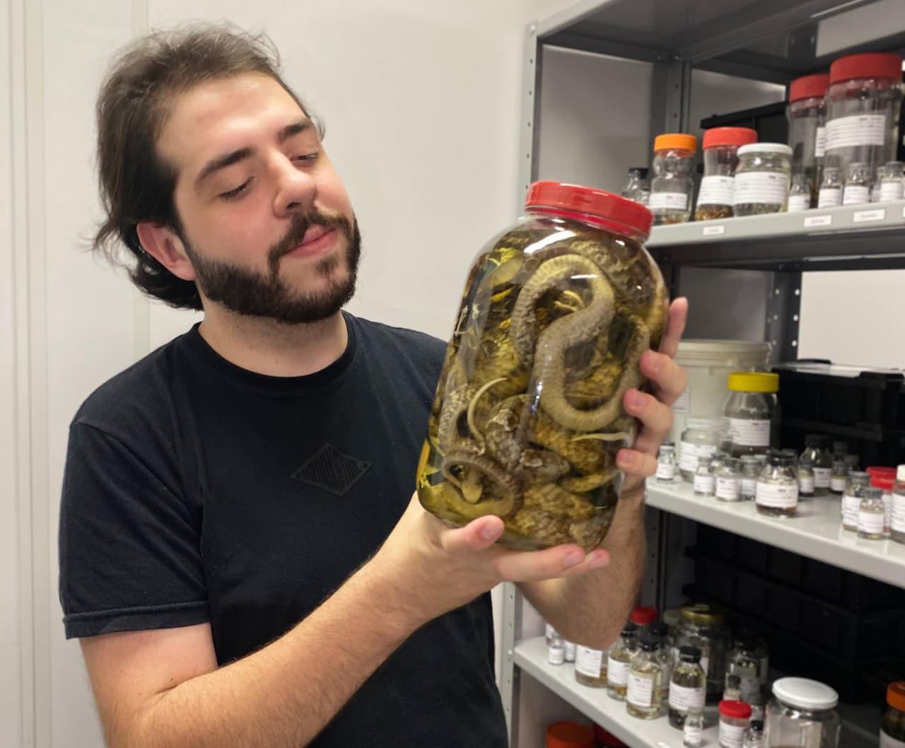 Atualmente atuo na área da Zoologia, com ênfase em Herpetologia, que é o estudo de anfíbios e répteis. No mestrado, desenvolvo pesquisas sobre a quitridiomicose, uma doença causada pelo fungo Batrachochytrium dendrobatidis (Bd), que infecta a pele dos anfíbios, um órgão essencial para funções vitais como respiração e equilíbrio hídrico, e é considerada uma das principais responsáveis pelo