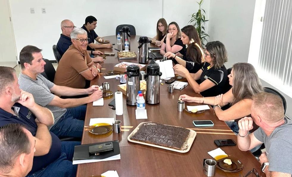 A administração municipal se reuniu com a nova diretoria da Associação Comercial e Industrial de Santa Clara do Sul (ACISC). O encontro na sala de reuniões do Centro Administrativo marcou a apresentação oficial da gestão e o alinhamento de pautas conjuntas. Entre os assuntos debatidos, esteve a organização do Calçadão de Páscoa, programado para o mês de abril, e a proposta de melhorias nas paradas de ônibus do município. A ideia é utilizar esses espaços como pontos permanentes de divulgação do comércio local, e ampliar a visibilidade das empresas santa-clarenses. Durante o encontro, a designer Tainá Carvalho apresentou o novo slogan e a nova identidade visual da ACISC: “Negócios locais. Benefícios para todos”, que passará a ser adotado em todas as campanhas institucionais da entidade.