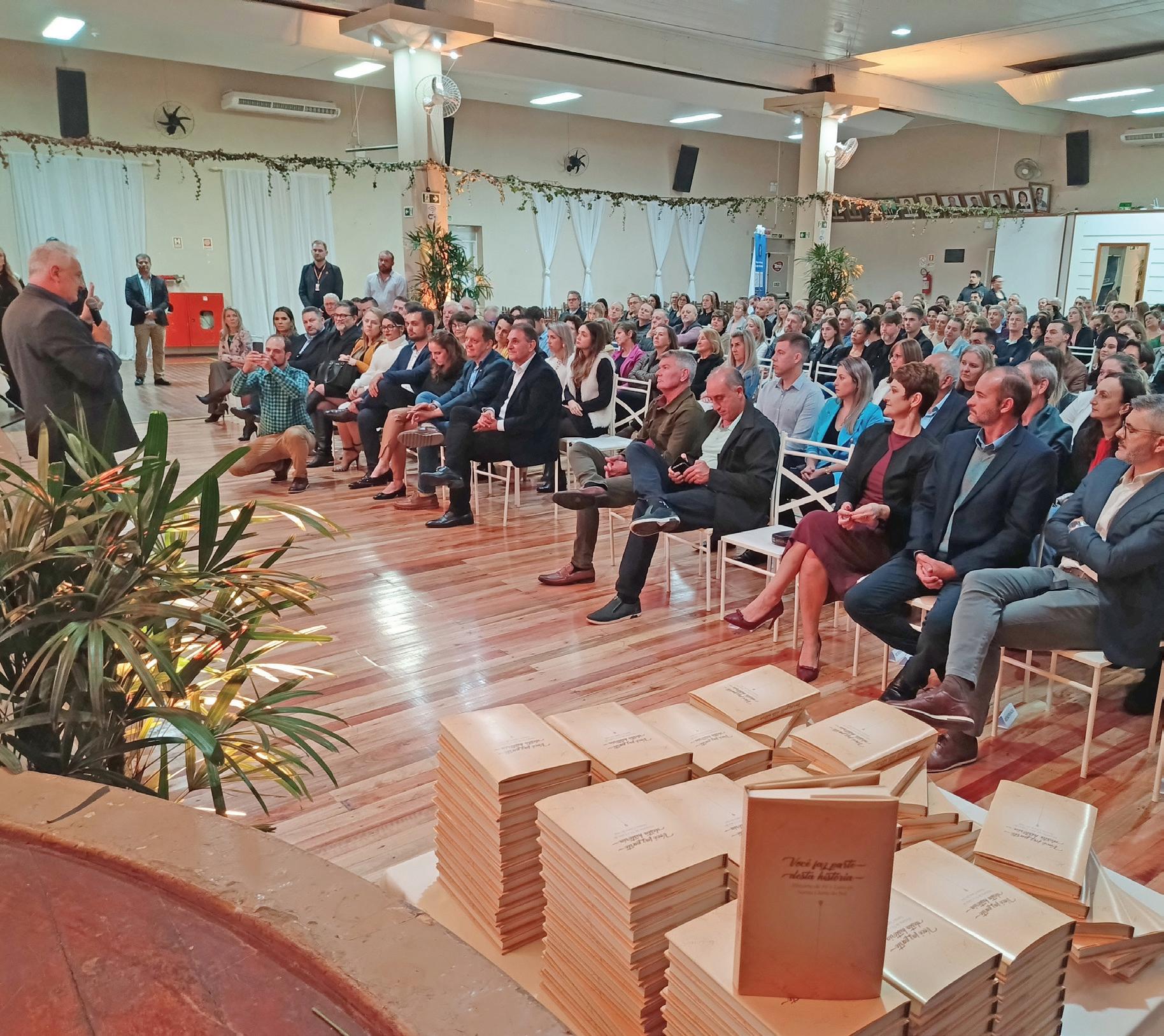 Publicação inédita escrita por jornalista do Estúdio Alfa e idealizado pelo município, detalha fatos que marcaram a história da cidade, desde a colonização até as obras e acontecimentos mais recentes. Material será distribuído em escolas e pontos turísticos, além de comercializado a partir da 5ª Santa Flor. Evento ontem à noite também marcou lançamento de aplicativo.