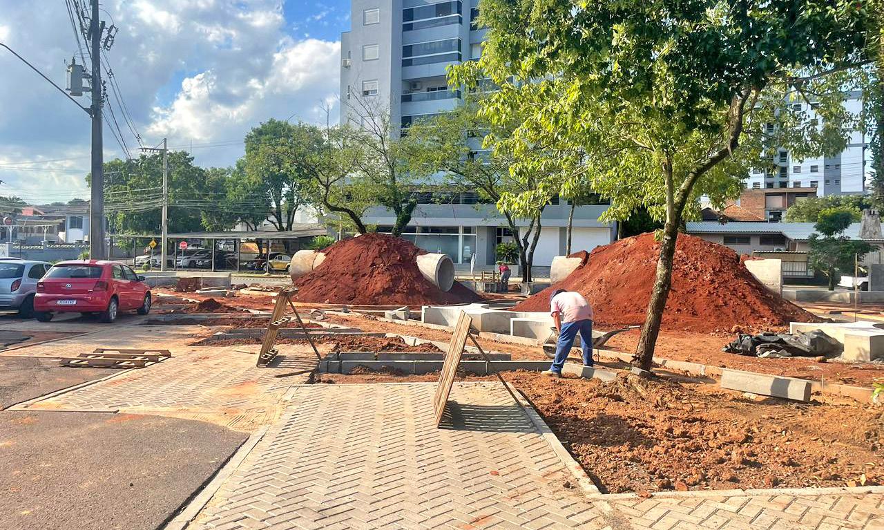 Obras na antiga praça Luís Inácio Müssnich alteram trânsito