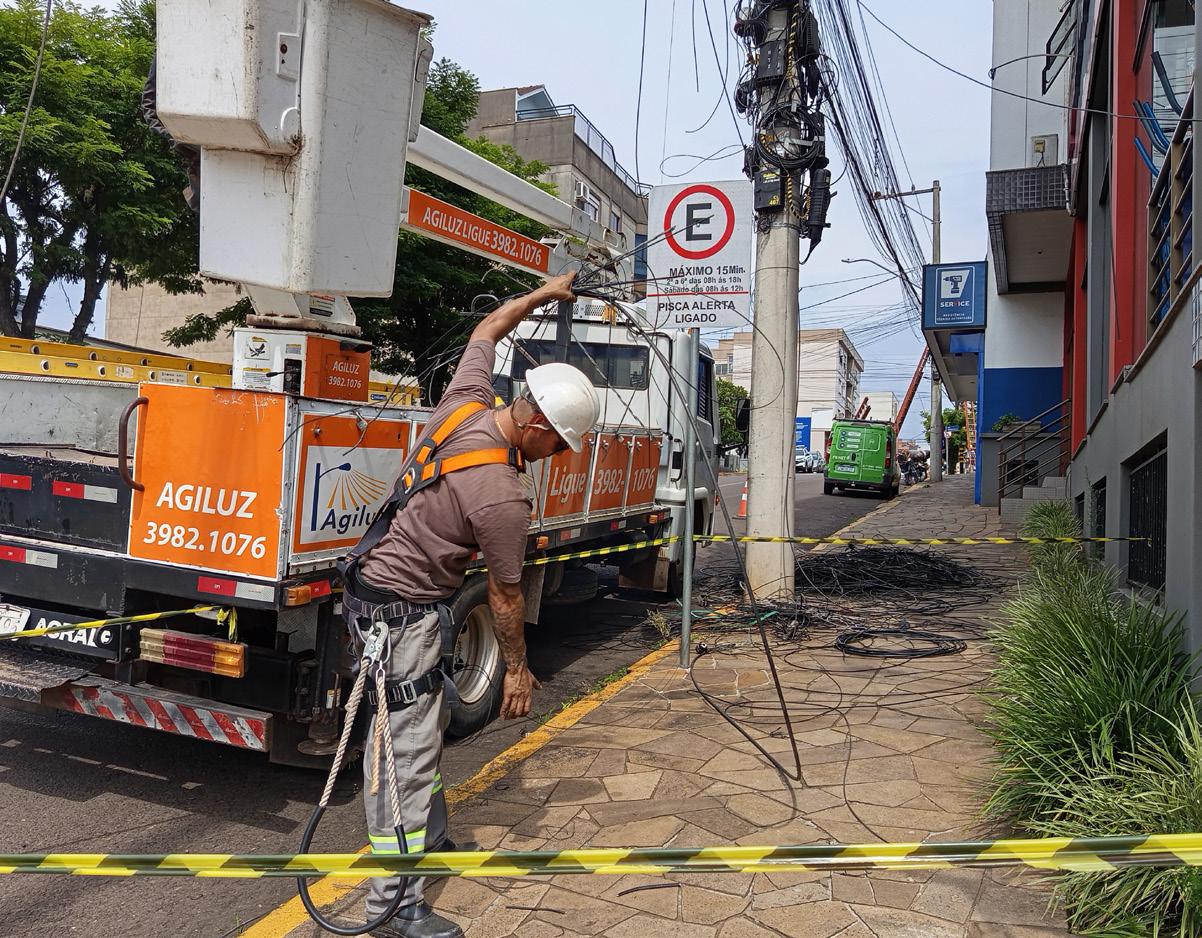 minimizando o risco de acidentes e combatendo a poluição visual. O trabalho é realizado com o apoio da prefeitura, em parceria com concessionárias de energia elétrica e provedores de internet e telefonia.