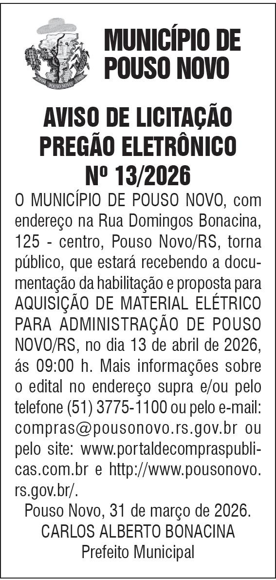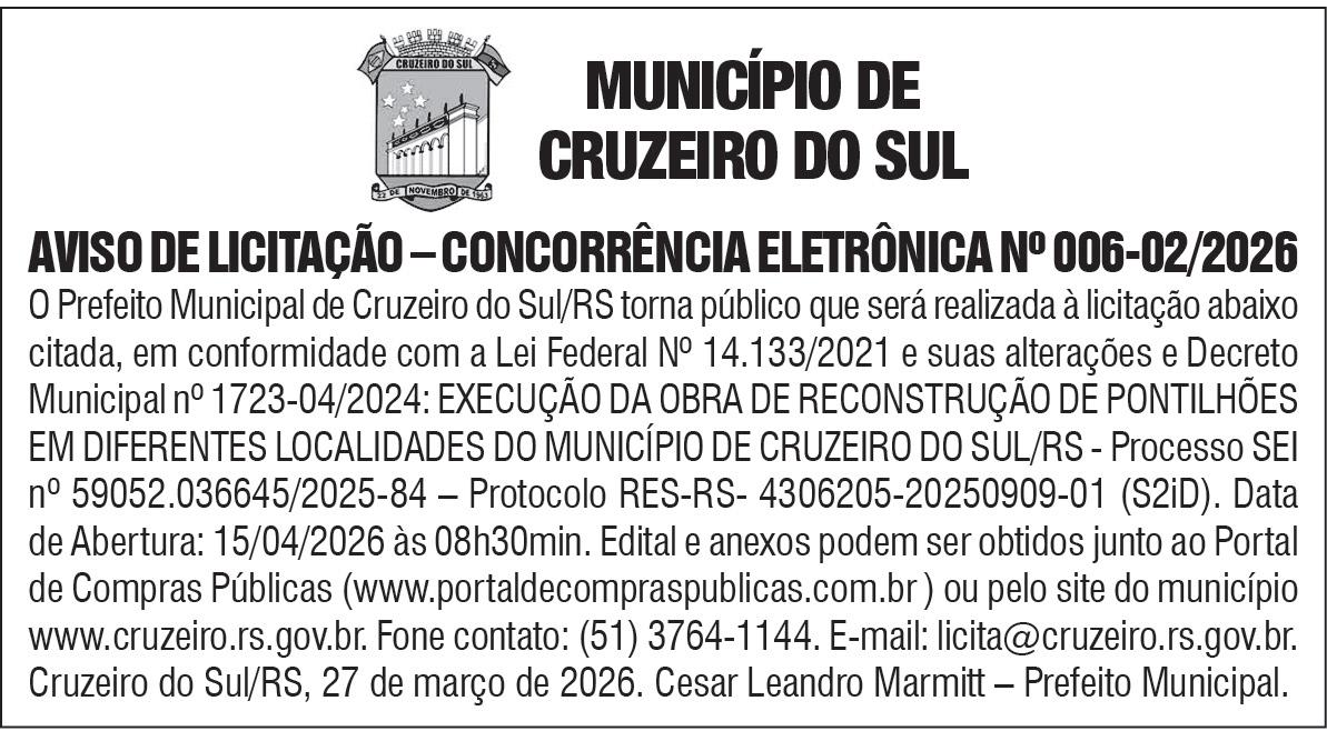 - Em meio às indefinições do calendário eleitoral, Eduardo Leite (PSD) deve cumprir nesta semana uma nova agenda na Região dos Vales. A previsão inicial era inaugurar obras nesta terça-feira, mas a equipe do governador alterou o cronograma inicial e muitos acreditam que a nova agenda será confirmada para o dia 1º de abril. No roteiro, os municípios de Venâncio Aires e Estrela.