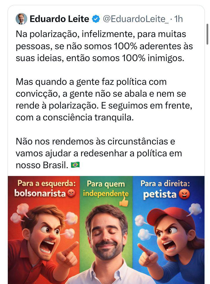 grande perda para todos, pois o Eduardo enriquece o debate político. Poderia ser uma voz para além da polarização.”