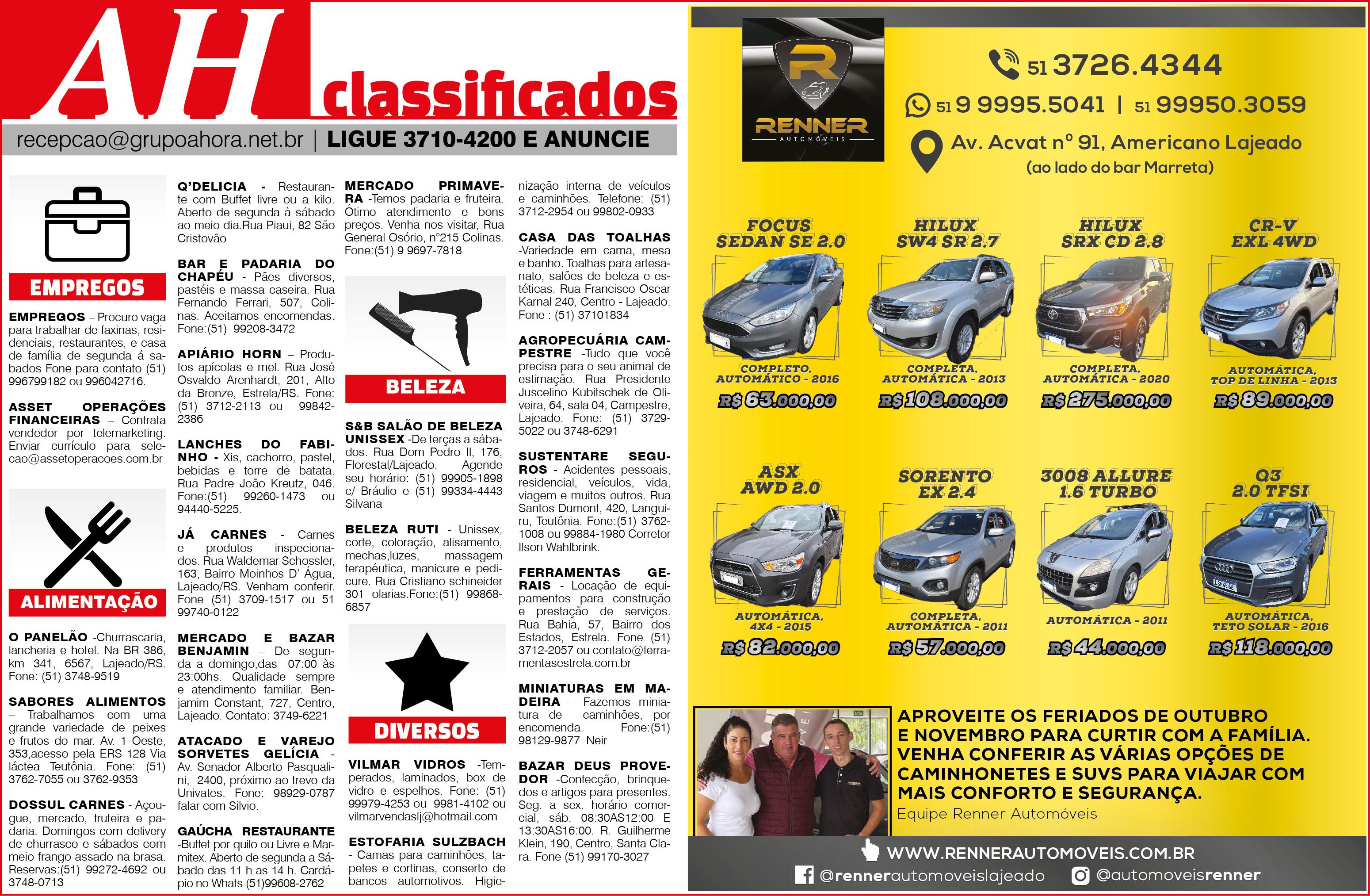 Reportagem: Gabriel Santos gabriel@grupoahora.net.br Reportagem: centraldejornalismo@grupoahora.net.br Diretor Executivo: Adair Weiss Diretor de Mercado e Estratégia: Fernando Weiss Diretor de Conteúdo Editorial: Rodrigo Martini Arroio do Meio Comercial: Elton de Andrade eltondeandrade10@hotmail.com | 51 99911 .4328 Encantado Reportagem: centraldejornalismo@grupoahora.net.br Teutônia