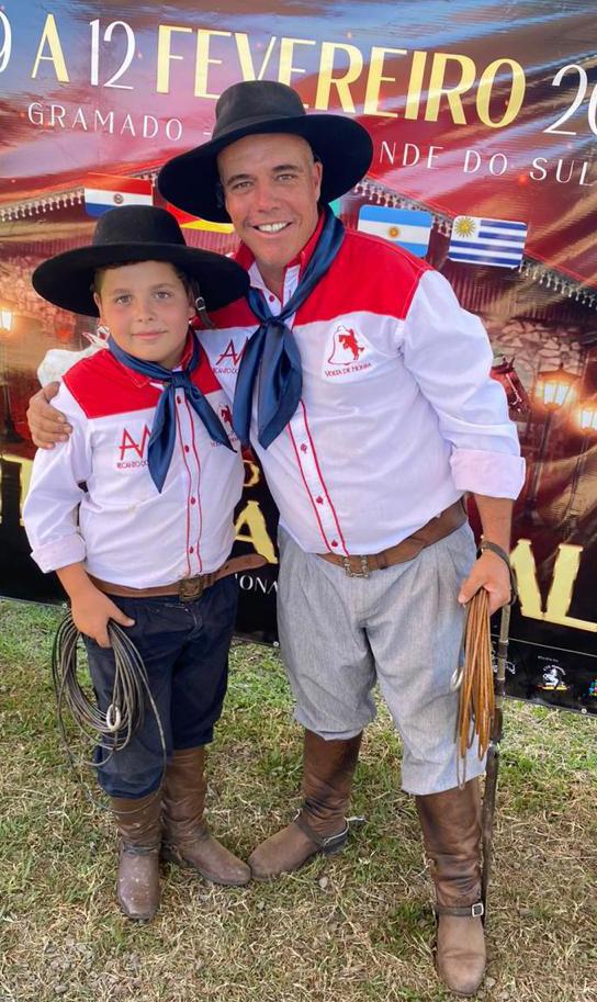 Este menino começou a laçar nos rodeios aos 7 anos, sempre na companhia da família e com o apoio total de seu pai Alexandre Marchese.
