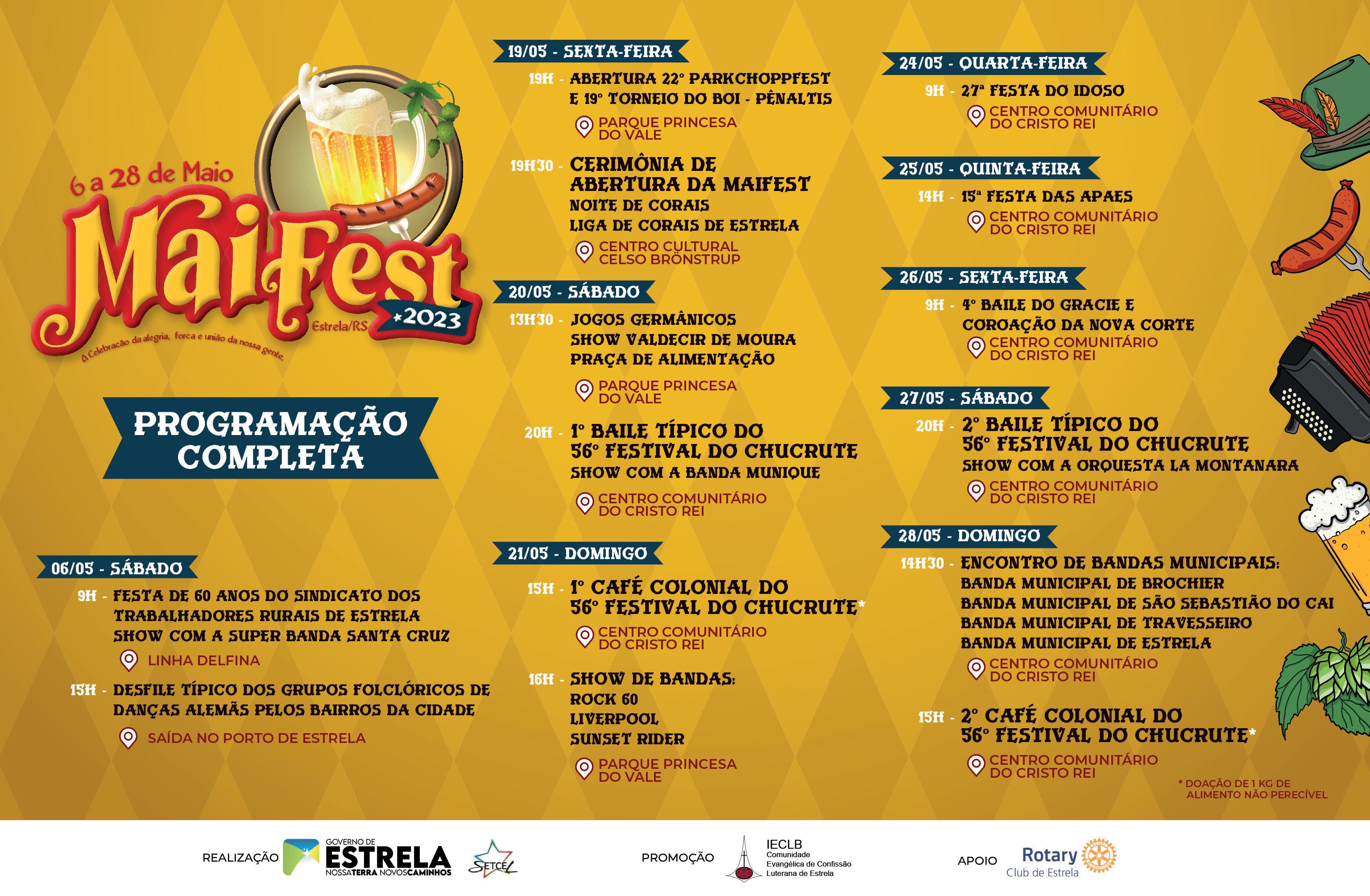 Relvado promove uma programação especial para festejar os 35 anos de emancipação político-administrativa neste sábado, 6. A lei que oficializou o município entrou em vigor em 9 de maio de 1988. As atrações começam às 15h30min, em frente ao Salão Paroquial, com Tchê Cambicho, seguido por André Magrão e Banda, Grupo Presença, Joel Carlo e Banda, DJ Fernando Cemin e show nacional com Hugo & Tiago. Para terminar a noite, DJ Leo Bald. Além da programação musical, haverá brinquedos infláveis para as crianças, praça de alimentação e presença de agroindústrias que irão expor seus produtos. Outro destaque é o jantar com espeto corrido, por adesão. A entrada é gratuita.
