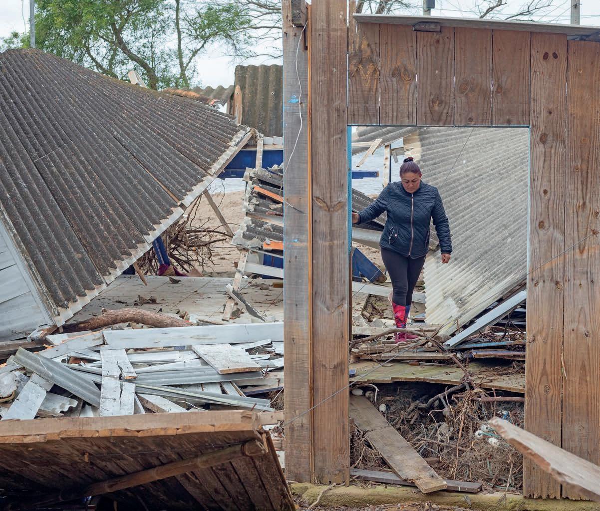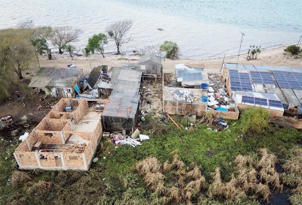 JÔ FOLHA Com dezenas de casas destruídas durante as enchentes, moradores da área em que Lagoa dos Patos e canal São Gonçalo se