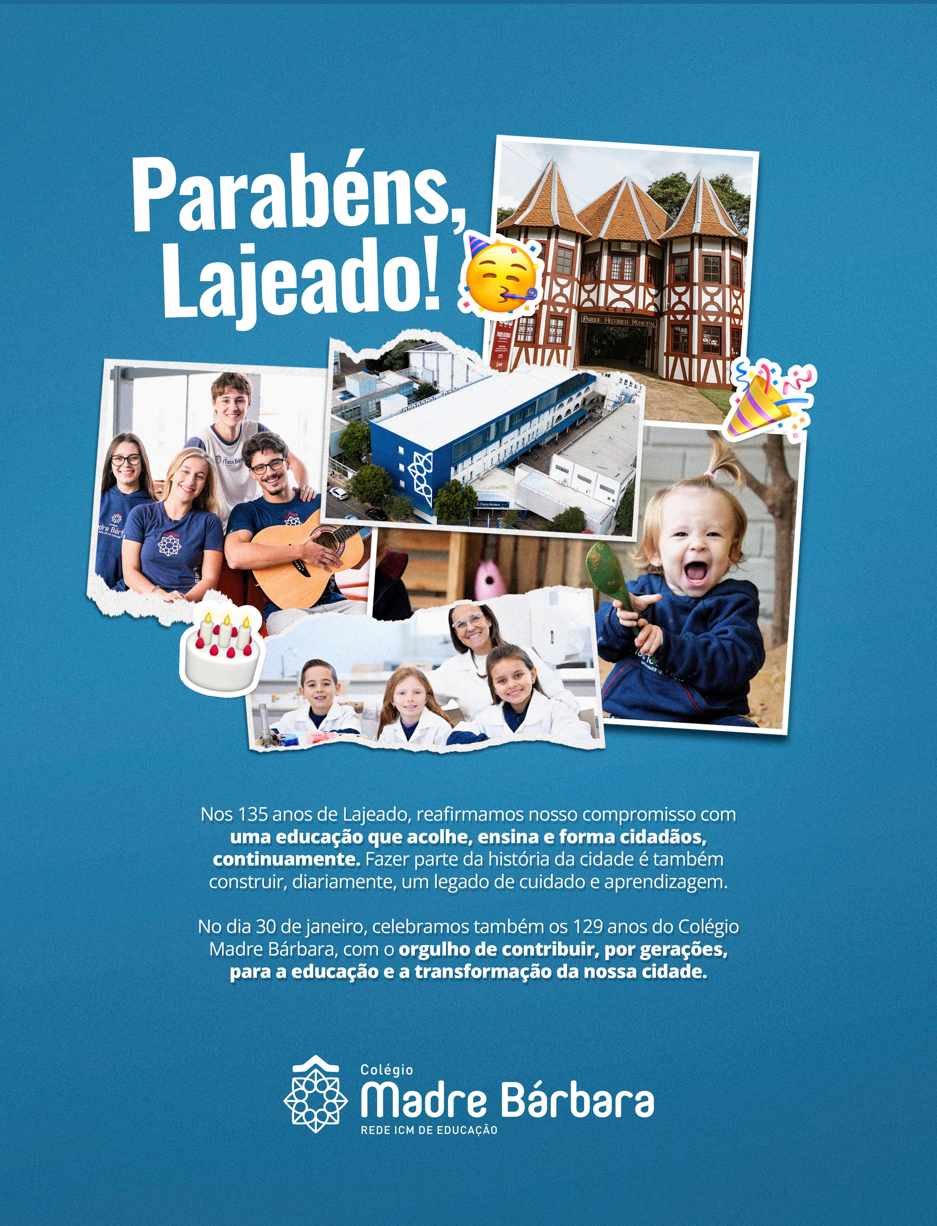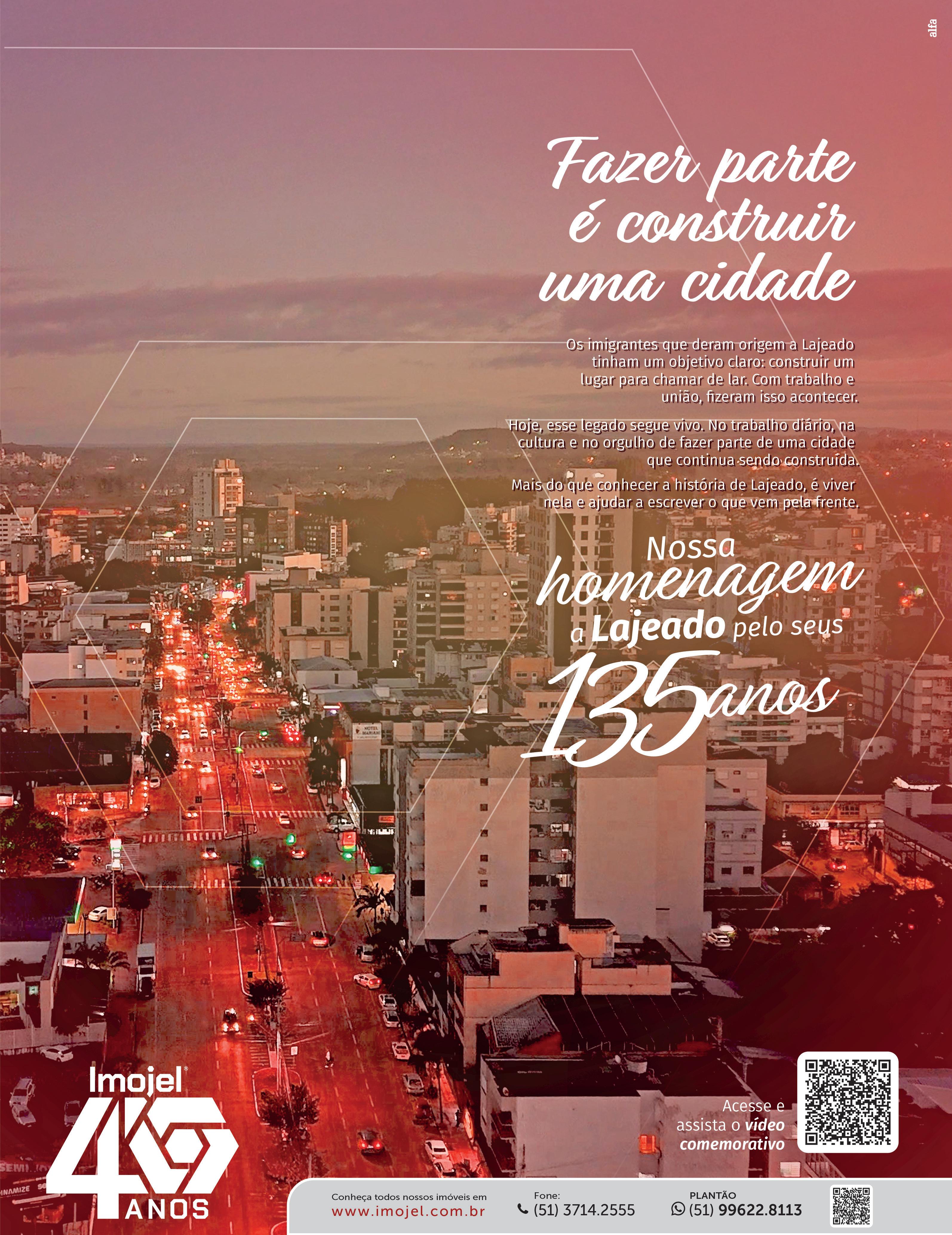todos”, pontua. Ao celebrar os 135 anos de Lajeado, ela destaca o desafio de construir uma cidade mais sustentável, resiliente e inclusiva. “Lajeado já demonstrou capacidade de se recuperar e se reinventar. Tenho certeza de que reúne as condições para enfrentar os próximos desafios e seguir como referência regional”.
