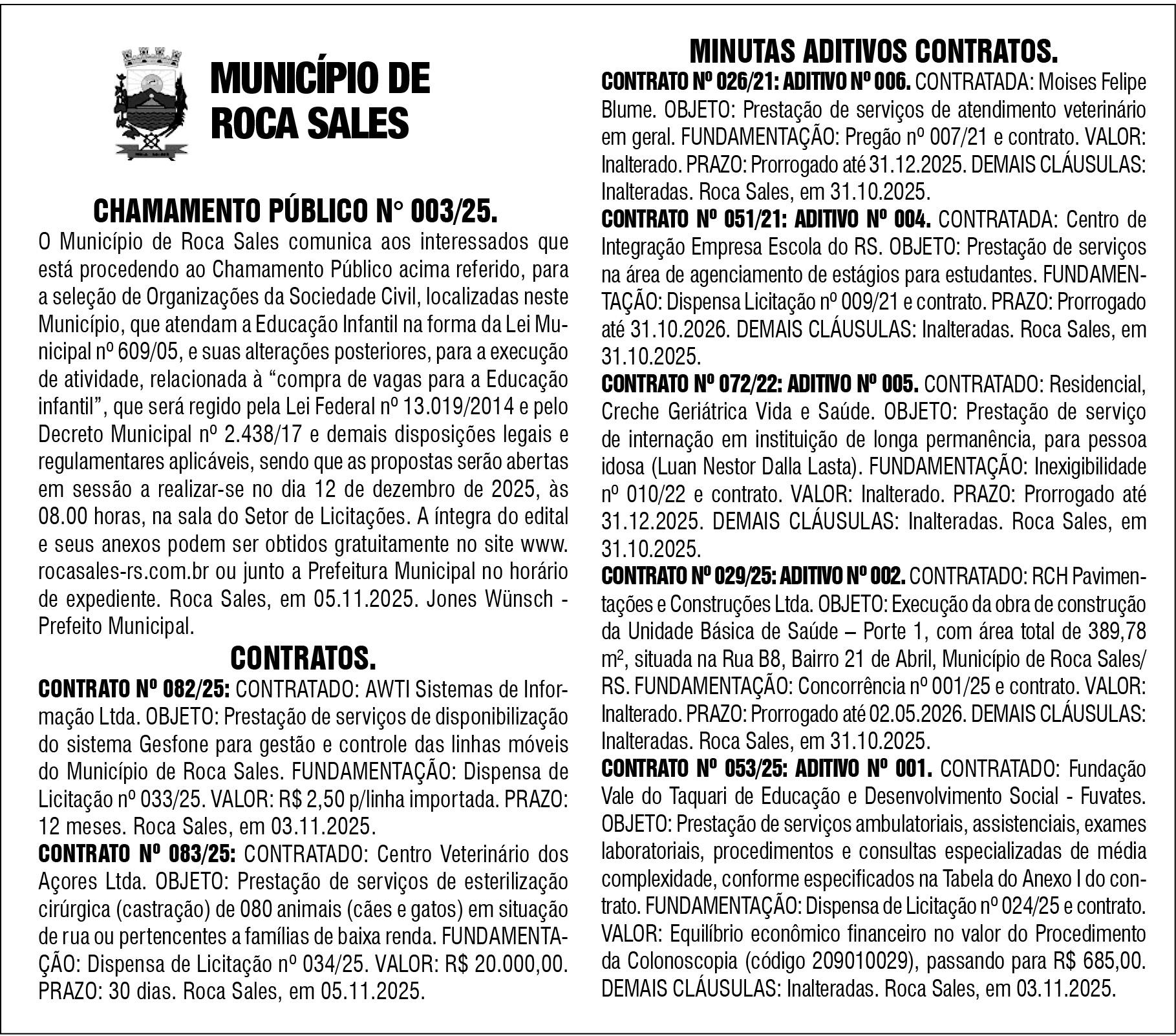 - Em Venâncio Aires, o vereador Elígio Weschenfelder (PSB) afirmou em plenário que denunciou ao Ministério Público o suposto uso irregular de veículo público. Segundo o vereador, o secretário de Cultura Sandro Kroth teria utilizado o carro para ir à farmácia em um sábado à tarde. Em resposta, o secretário disse que naquele dia ele trabalhava no ensaio geral da escolha das soberanas e passou na farmácia para comprar band aid para as candidatas.”. - O governo de Estrela anuncia a concorrência pública para executar serviço de “restabelecimento Parcial da Escola Municipal de Ensino Fundamental Leo Joas”, localizada no bairro das Indústrias, e parcialmente destruída na enchente de 2024. A sessão ocorre no dia 12 de novembro.