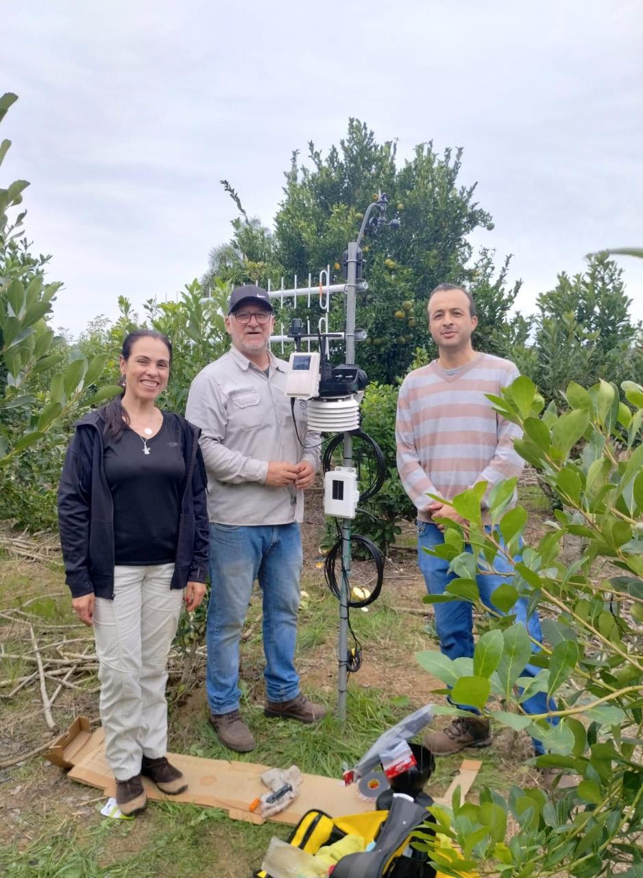 Pesquisadores da Seapi com os equipamentos instalados em Ilópolis