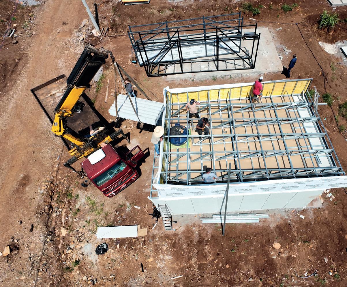 Previsão é de que todas as 50 casas sejam entregues até abril. Modelo de construção prevê moradias de 44m²