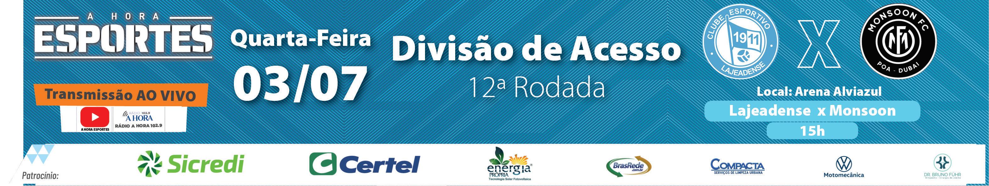 Restam três rodadas para o fim da primeira fase e o Lajeadense segue a busca pela classificação às quartas de final da Divisão de Acesso. O Alviazul tem um duelo difícil na tarde de hoje. Às 15h, recebe o líder Monsoon na Arena. A partida tem transmissão da Rádio A Hora.