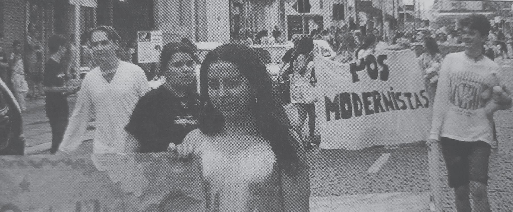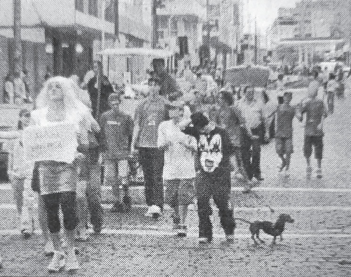 Alunos, pais e amigos participavam do desfile de abertura da VI Grande Gincana do Castelinho, o Colégio Estadual Presidente Castelo Branco de Lajeado. A caminhada seguia pela rua Júlio de Castilhos e marcava o início da competição que, em 2004, tinha o tema “Castelinho