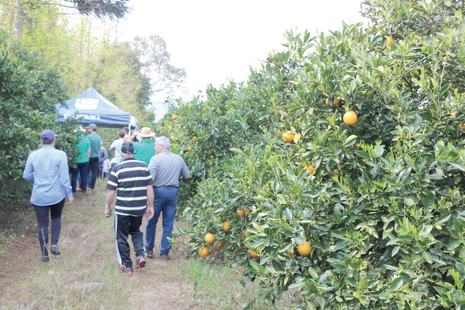 são cerca de 250 produtores que investem em citros, em áreas de cerca de dois hectares”, pontua. Marcon explica ainda que o preço atrativo para o agricultor, em evolução desde o ano passado, tem sido um dos diferenciais na hora de apostar nesse investimento, além da sanidade, uma vez que o Rio Grande do Sul permanece como área livre de greening, uma das mais severas doenças da citricultura. “Por isso a ideia dessa Tarde de Campo também é a de fazer uma conscientização com o público, para adotarem medidas de prevenção e de boas práticas de manejo, já que o greening não tem cura”, frisa. Representante do setor de Defesa Sanitária Vegetal da Secretaria da Agricultura, Pecuária, Produção Sustentável e Irrigação (Seapi) do Governo do Estado, a fiscal Maria Luiza Conti, reforçou a importância de adquirir plantas de viveiros certificados e com mudas sadias, para minimizar a entrada da doença. Em sua manifestação, mencionou ainda os sintomas, que envolvem desde folhas amareladas, de textura mais parecida com couro e mais grossas, até o amarelecimento na região do pedúnculo, sementes mal formadas e frutos pequenos, deformados e com lados desproporcionais, quando cortados ao meio.