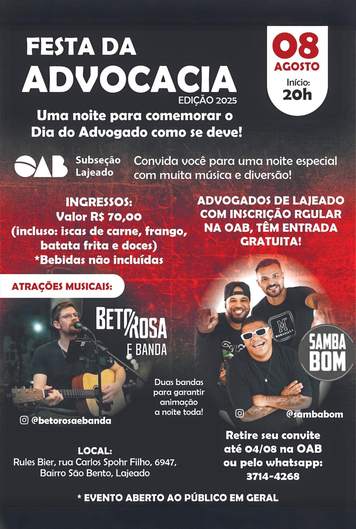 Ao meio-dia será servido o tradicional almoço, com cartões a R$ 40 antecipadamente e R$ 45 no local. O cardápio e o ambiente prometem um momento especial de partilha e união entre gerações.