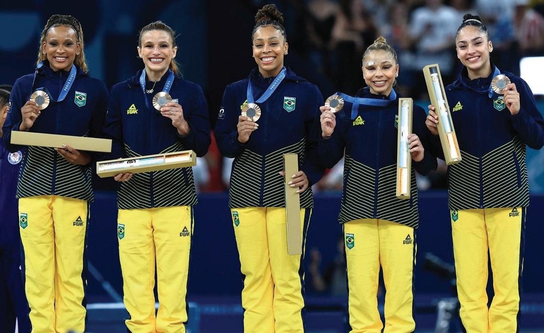 Rebeca Andrade, Flávia Saraiva, Jade Barbosa, Julia Soares e Lorrane Oliveira escreveram, na tarde de ontem, mais um capítulo da história da ginástica artística brasileira. As cinco ginastas conquistaram, no último salto, o bronze por equipes nas Olimpíadas de Paris 2024, uma medalha olímpica inédita e há muito tempo aguardada. Com elas, o Brasil chegou a quarta medalha.