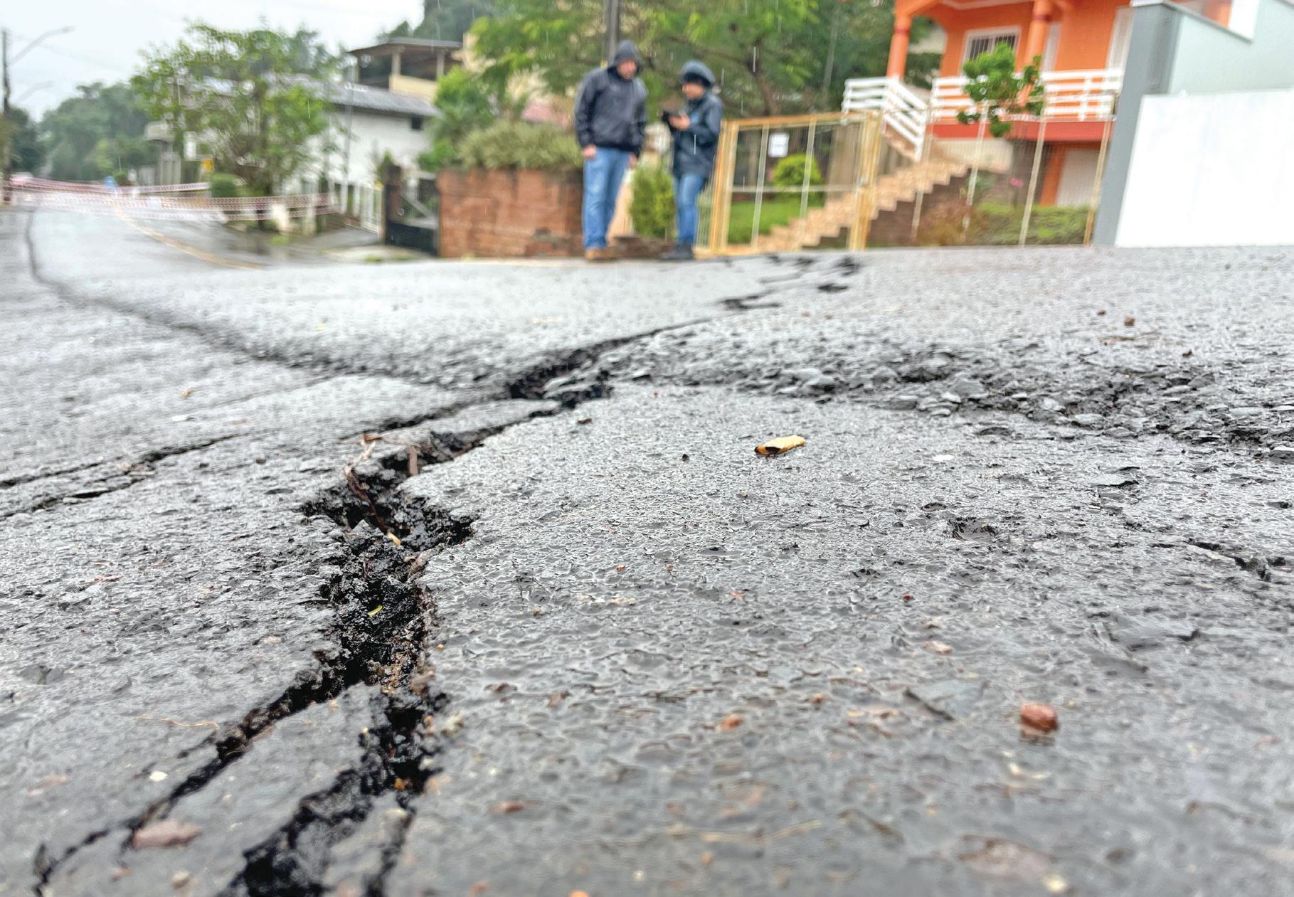 Após temporais, municípios como Teutônia, Arroio do Meio e Cruzeiro do Sul avaliam fendas em solos e estruturas. Famílias ocupam as residências, com restrições. Outras devem desocupar locais com danos. Circulação de veículos também é restrita.