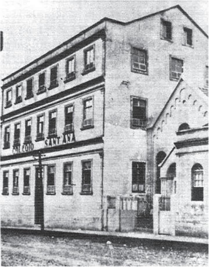 A capela, à direita, e o antigo prédio cavam na rua Borges de Medeiros e foram demolidos em 1967