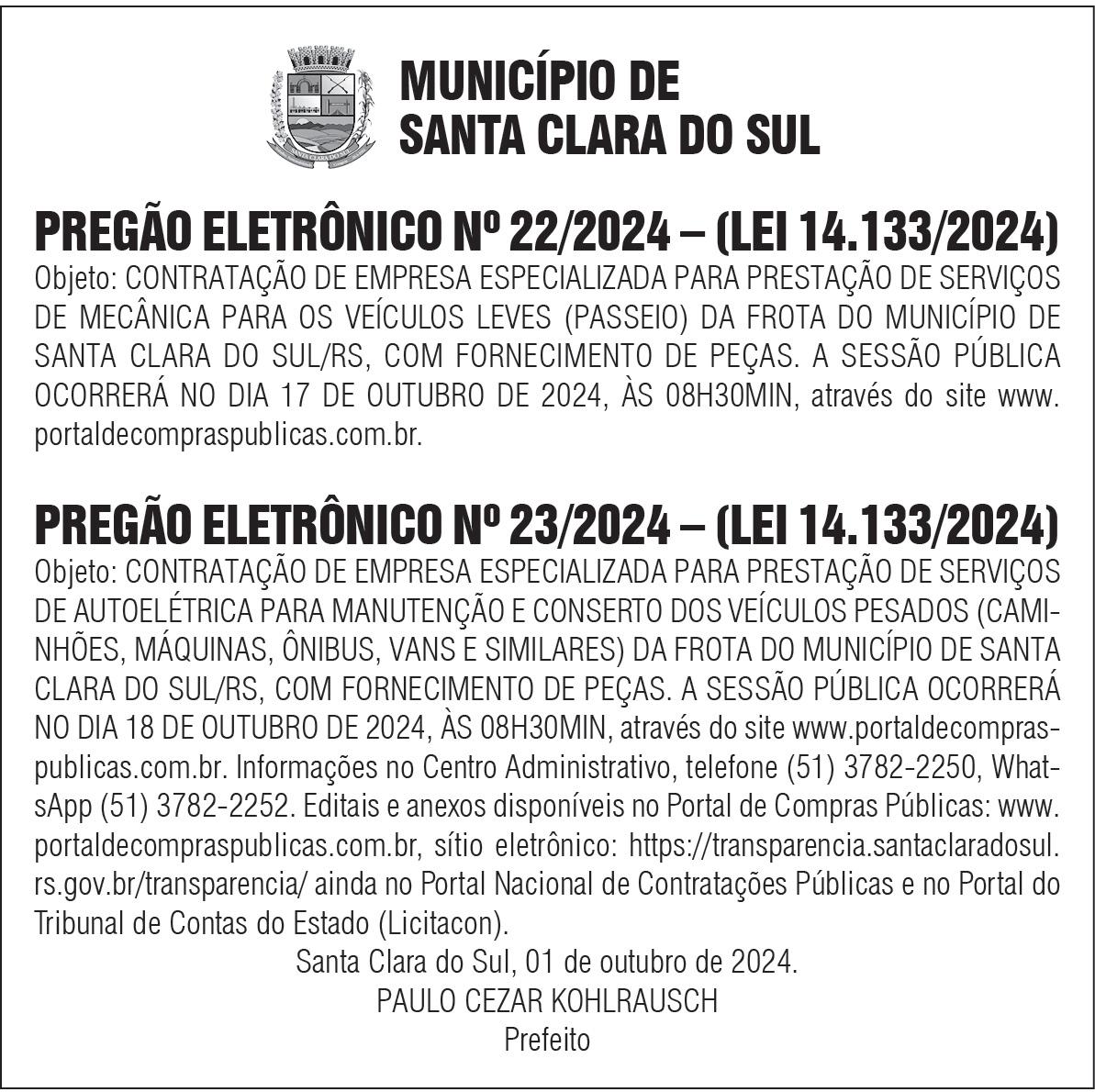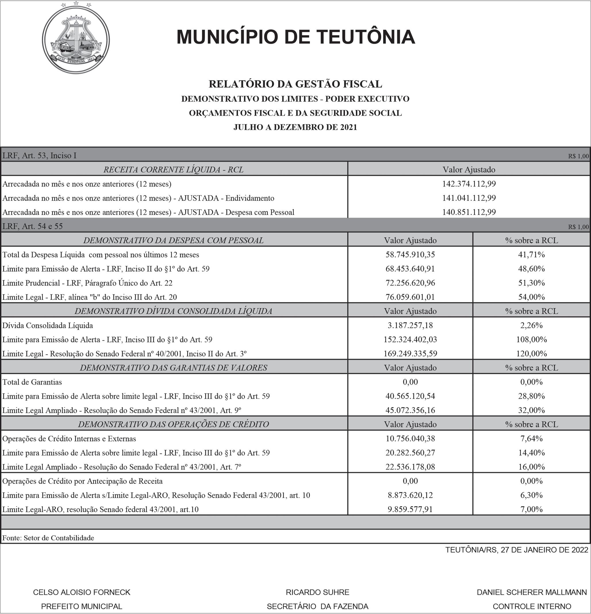 - Em Lajeado, o governo anuncia a prorrogação do período de designação do servidor Cassiano Jung para exercer o cargo de Secretário Municipal de Obras e Serviços Urbanos, em substituição ao titular, Günther Meyer, e por motivo de “licença saúde” do titular.