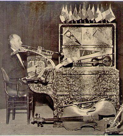 uma estrutura musical singular. Com o aparelho, ele podia tocar sete instrumentos musicais ao mesmo tempo, o que rendeu o apelido.