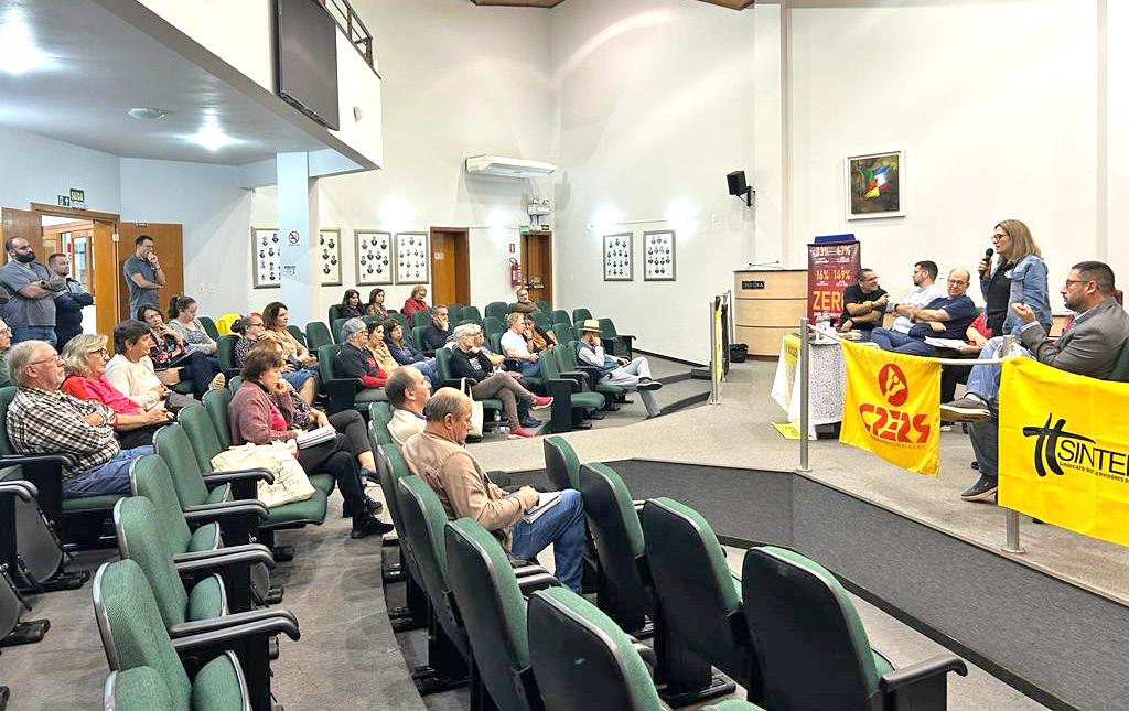 Plenária na câmara de vereadores de Estrela reuniu servidores estaduais para debater mudanças apresentadas pelo Estado. Profissionais apontam impacto no SUS e solução ineficaz contra a crise financeira da instituição.