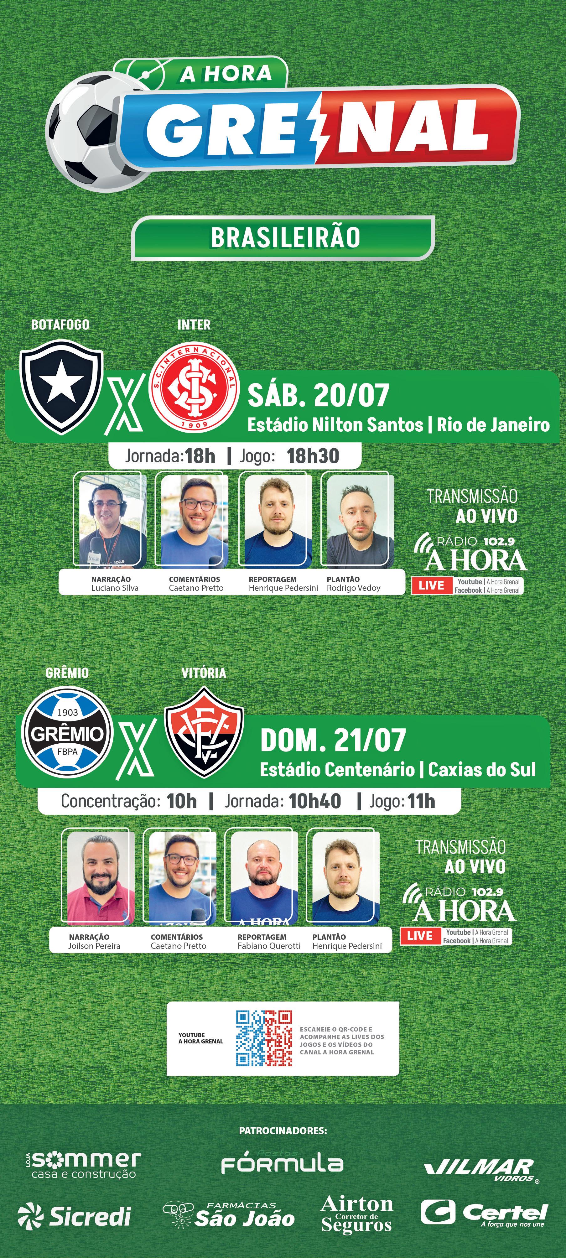 Internacional realinha os objetivos após eliminações e a demissão de Eduardou Coudet e inicia neste sábado uma nova era no Estádio BeiraRio. Roger Machado deixa o Juventude e assume o Inter com a missão de ainda tentar salvar a temporada. A primeira partida é dura, fora de casa, contra o líder Botafogo. As duas equipes se enfrentam no Estádio Nilton Santos, às 18h30min. A Rádio A Hora transmite o confronto. Um dos jogadores que mais atuou com a camisa do Grêmio, e também muito identificado com o Juventude, Roger chega para a primeira jornada a frente do Colorado. Ele foi anunciado na quarta-feira, treinou pela primeira vez na quinta e já viajou na sexta para o Rio de Janeiro, onde estará na casamata vermelha pela primeira vez.