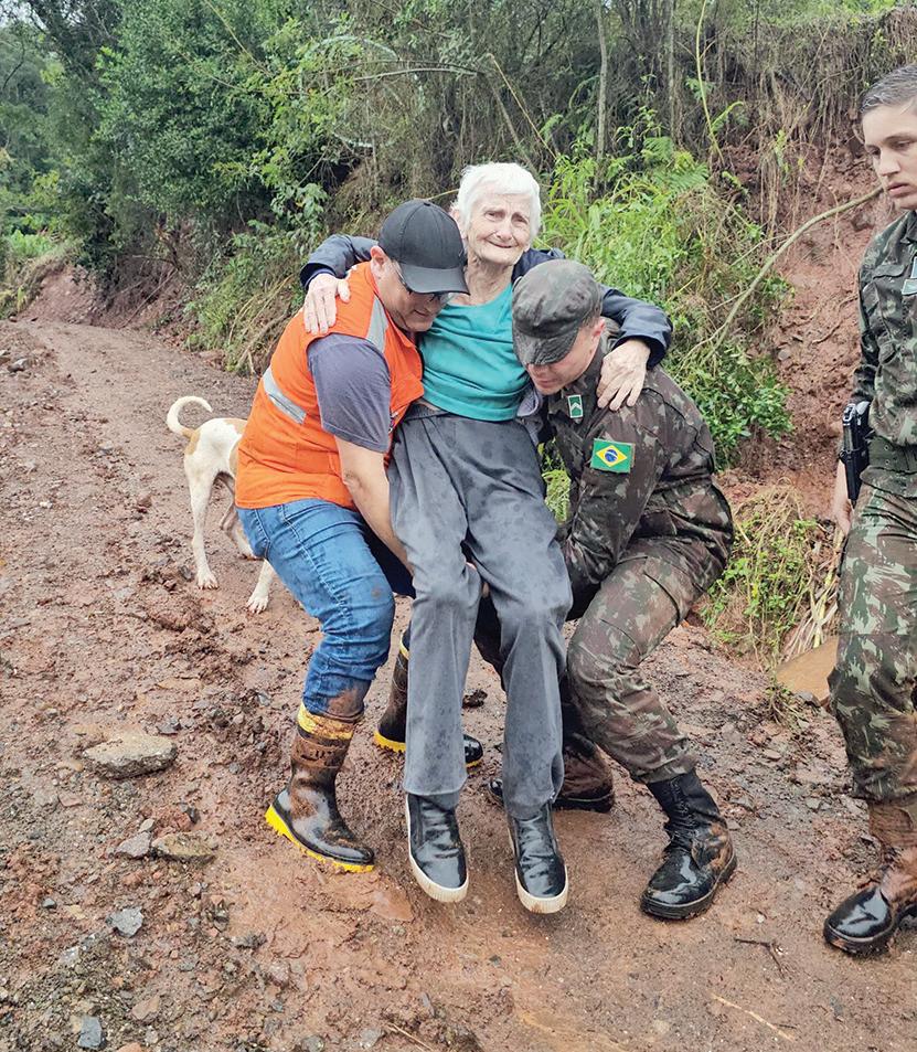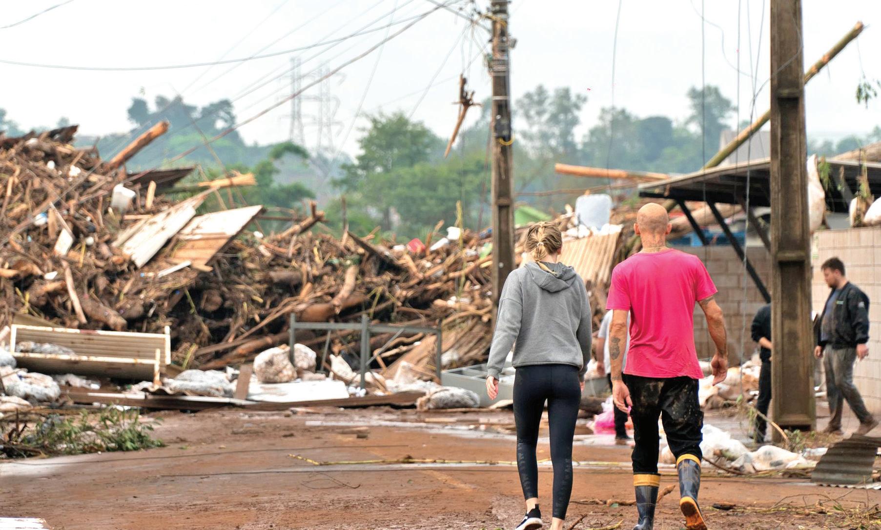 Odrama no campo é uma representação vívida das dificuldades enfrentadas pelos produtores rurais no Vale do Taquari. A falta de estradas, luz, máquinas e alimentos é mais do que uma lista de privações. Tratase de um retrato da luta diária pela sobrevivência e resiliência depois da catástrofe. A produção primária da região sofre consequências devastadoras. Os animais estão definhando pela falta de ração, pasto e silagem. A terra, contaminada pelo lodo, inviabiliza o plantio e compromete as próximas lavouras. Não bastasse esses dramas, os agricultores ainda somam os danos aos implementos agrícolas, galpões e residências.