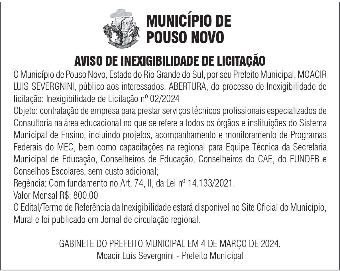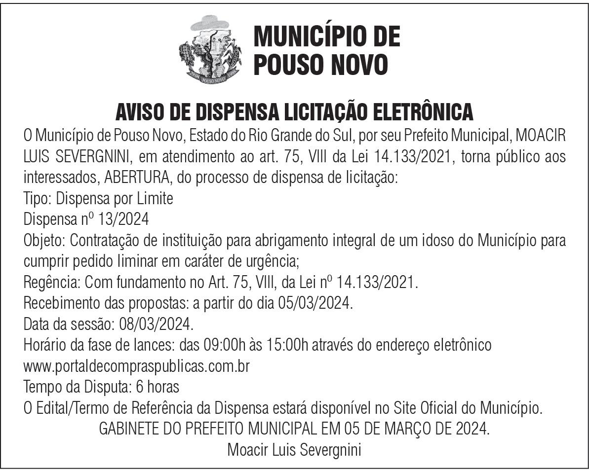 cial no formato ontem a empresa interessada deveria apresentar o menor preço. A contratação envolve a coleta dos resíduos, e transporte até a unidade de tratamento licenciada e a indicada pelo município.