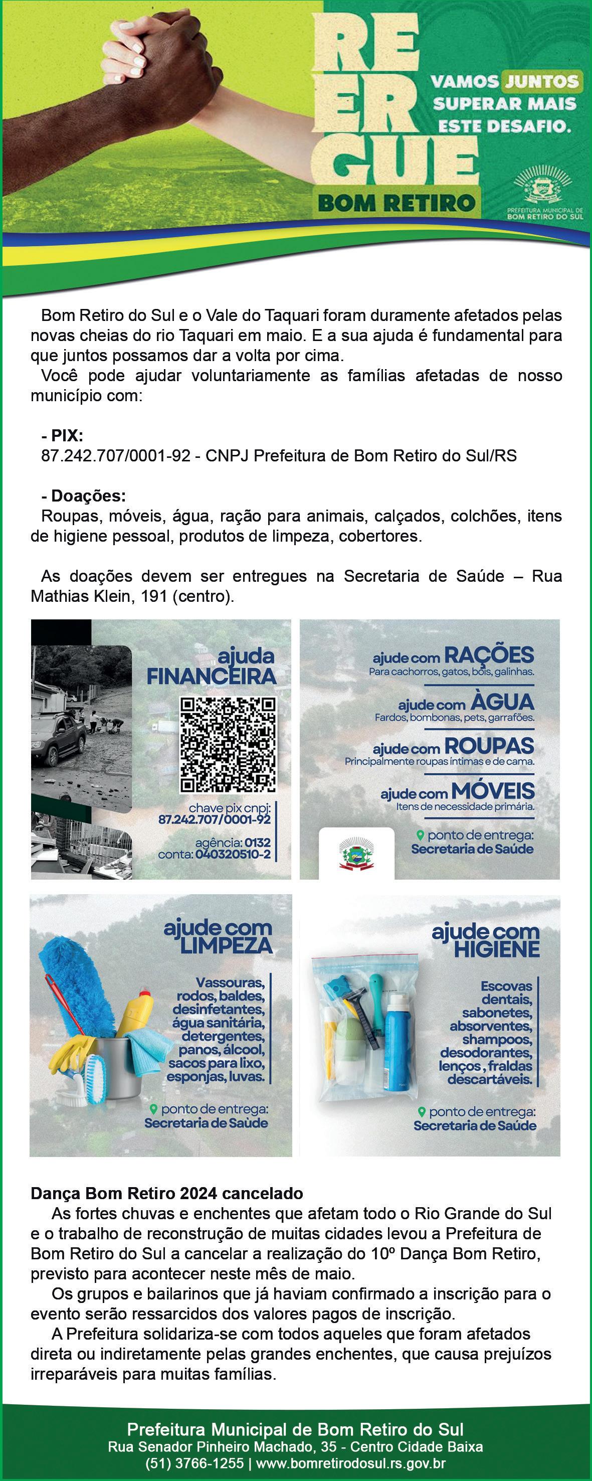 atingidas pelas enchentes que assolaram o Rio Grande do Sul. As doações serão recebidas nas instituições em Lajeado e em Santa Cruz do Sul, em pontos devidamente identificados. O Ministério Público será responsável pela distribuição dos materiais aos estudantes dessas escolas.