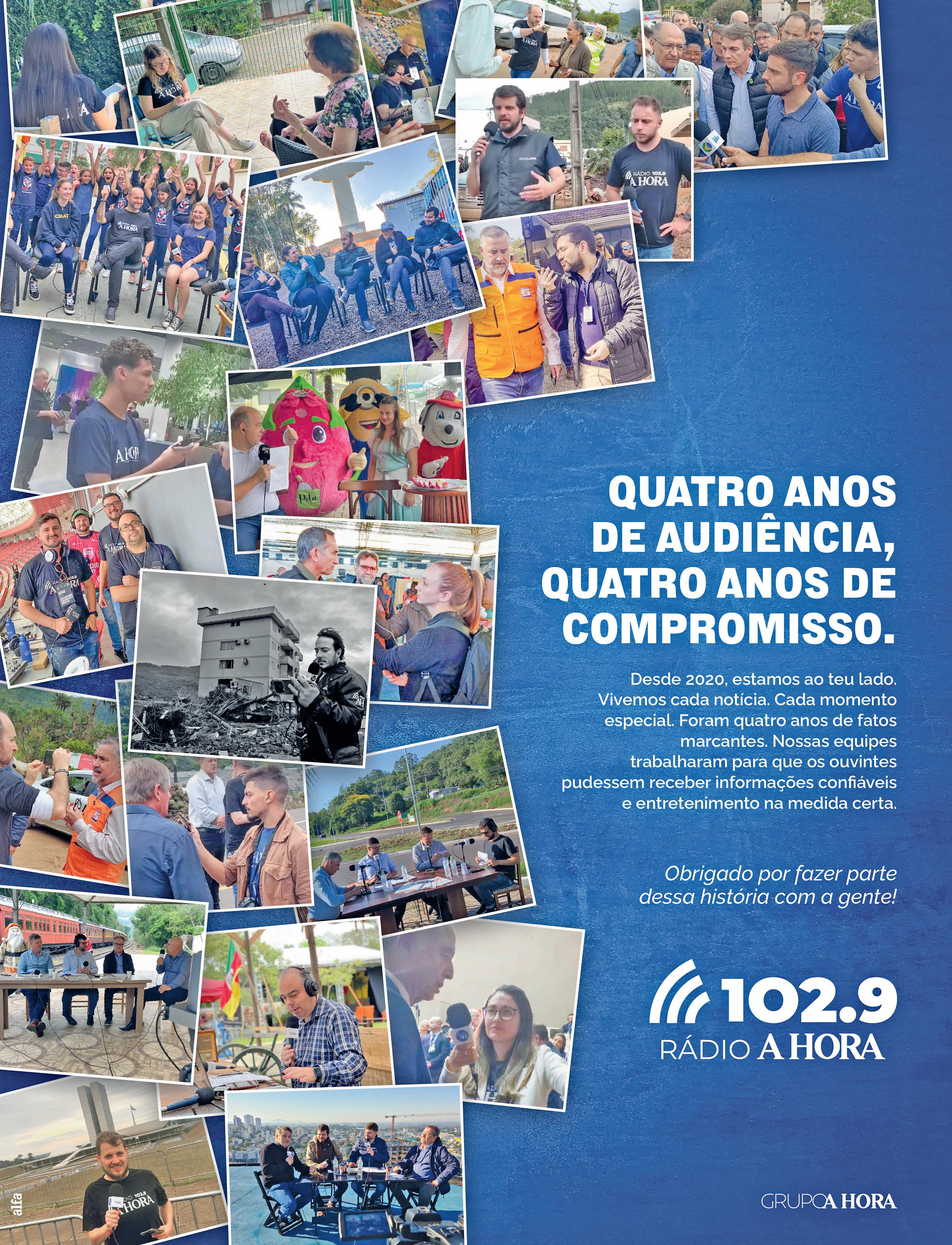 Neste domingo, 24, a Rádio A Hora 102,9 comemora seu quarto aniversário. Ao unir, na medida certa, o jornalismo e o entretenimento, a emissora rapidamente caiu no gosto dos ouvintes do Vale do Taquari e se consolidou no cenário da comunicação no interior.