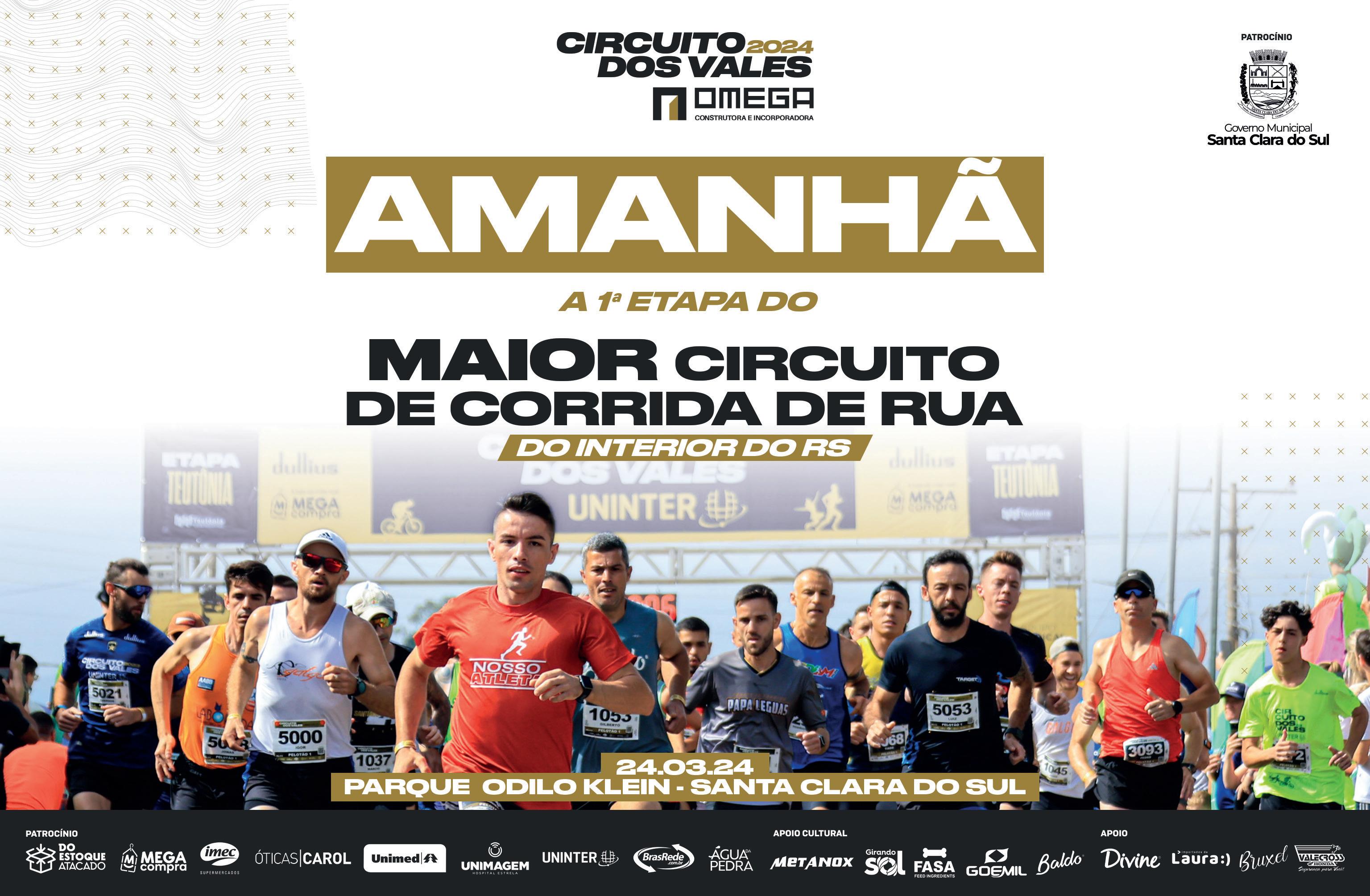 A primeira etapa da temporada do Circuito dos Vales/Omega Construtora será em Santa Clara do Sul, neste domingo, 24 de março, pela manhã.
