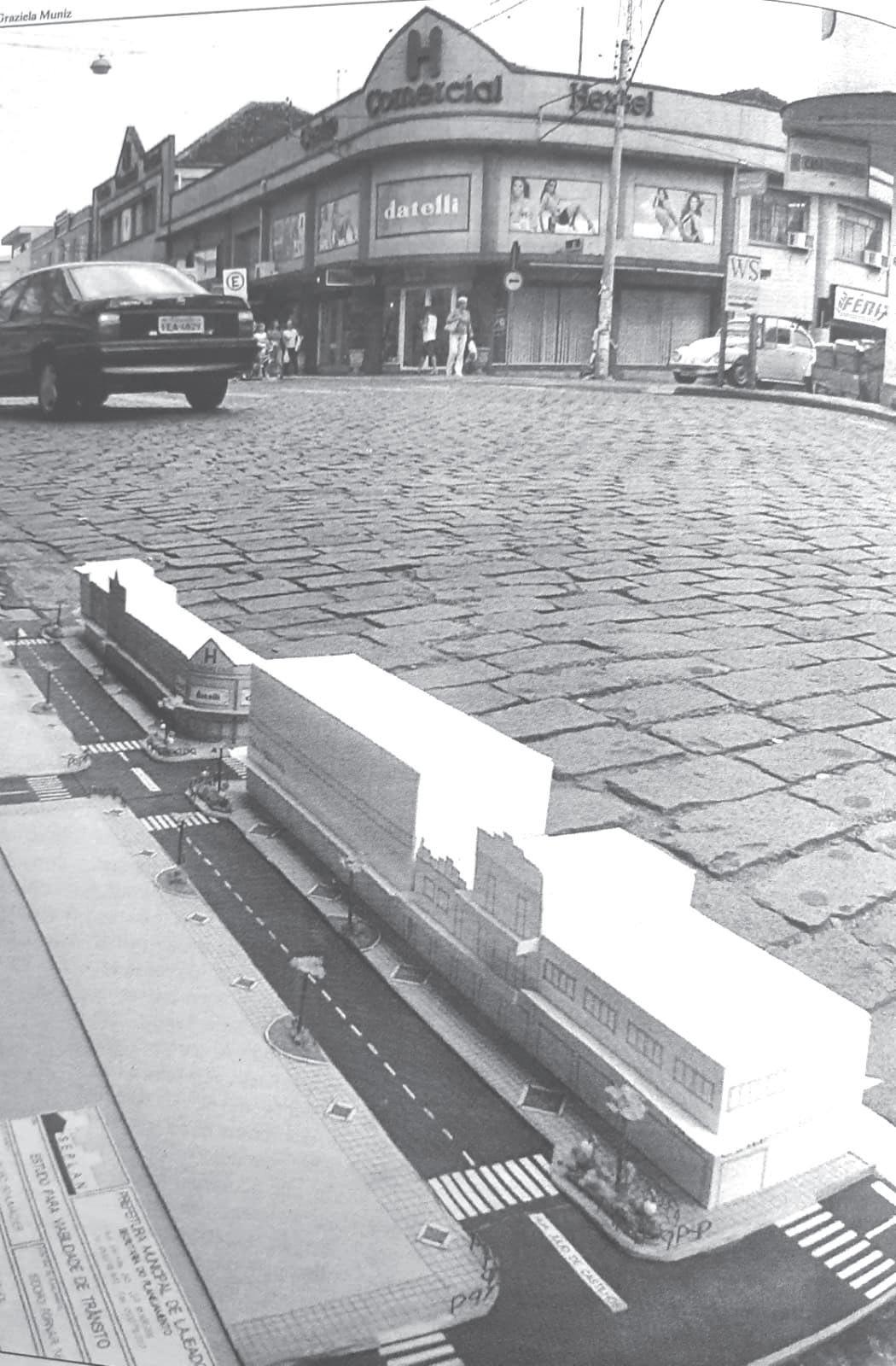A maquete com a remodelação da rua, que teria uma calçada mais larga e até arborização