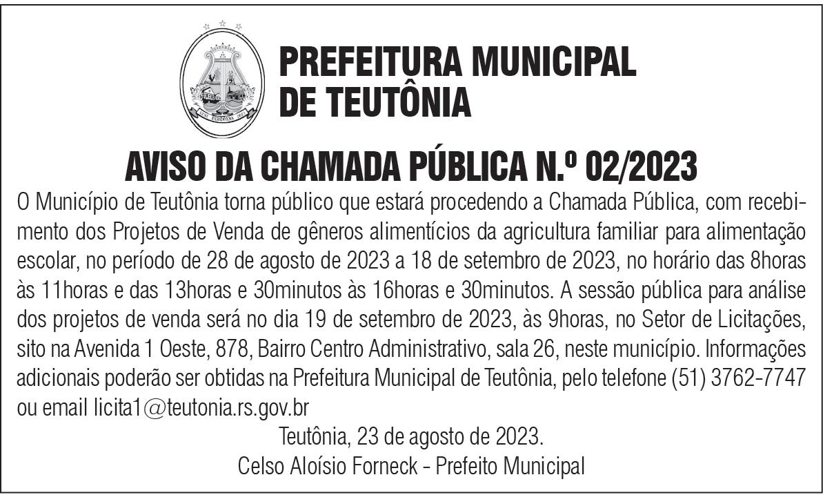 Com a finalidade de promover, apoiar e fomentar as ações de estruturação dos sistemas produtivos, o governo de Teutônia entregará à comunidade o Galpão do Agricultor. A inauguração será nesta sexta-feira, 1º, às 14h, na Avenida Um Oeste, no bairro Centro Administrativo.