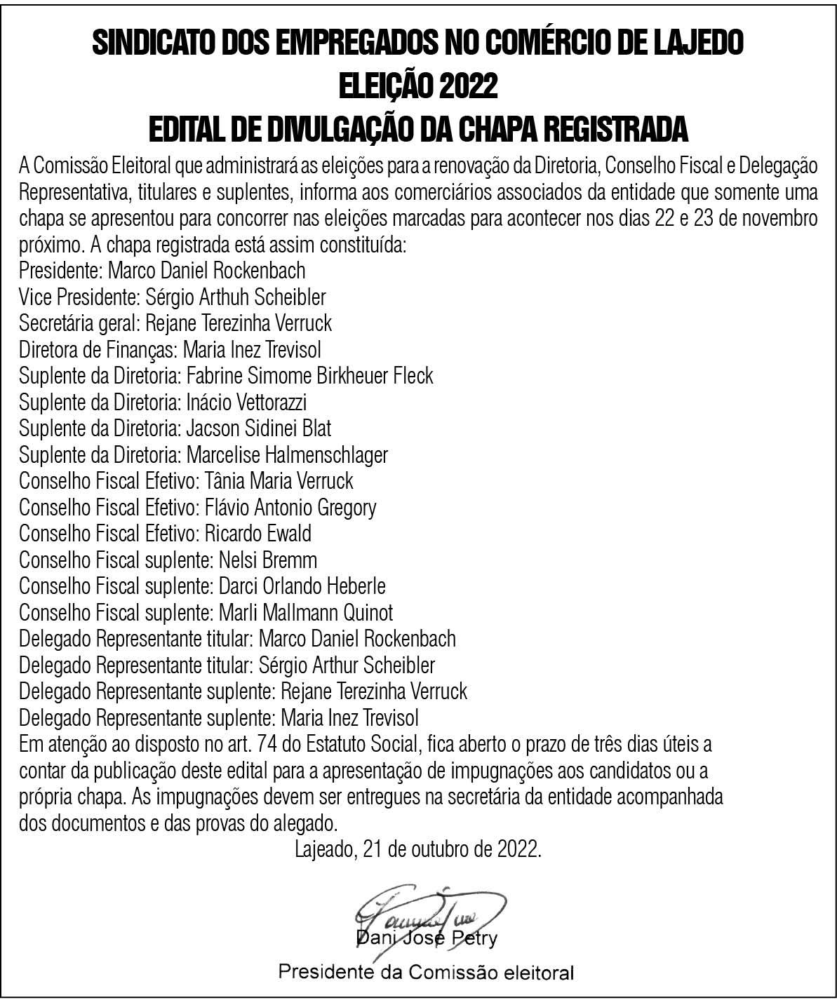 Os artigos e colunas publicados não traduzem necessariamente a opinião do jornal e são de inteira responsabilidade de seus autores. Impressão Zero Hora Gráfica Filiado à Fundado em 1º de julho de 2002 | Vale do Taquari - Lajeado - RS Diretor Executivo: Adair Weiss Diretor de Mercado e Estratégia: Fernando Weiss Diretor de Conteúdo Editorial: Rodrigo Martini Contatos eletrônicos: Av. Benjamin Constant, 1034, Centro, Lajeado/RS grupoahora.net.br / CEP 95900-104