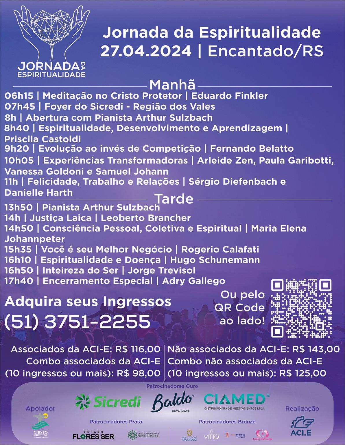 Neste sábado, 27, meditação ocorre a partir das 6h15 no Cristo Protetor, em Encantado. Seguida por um dia de palestras no Auditório da Sicredi Região dos Vales.