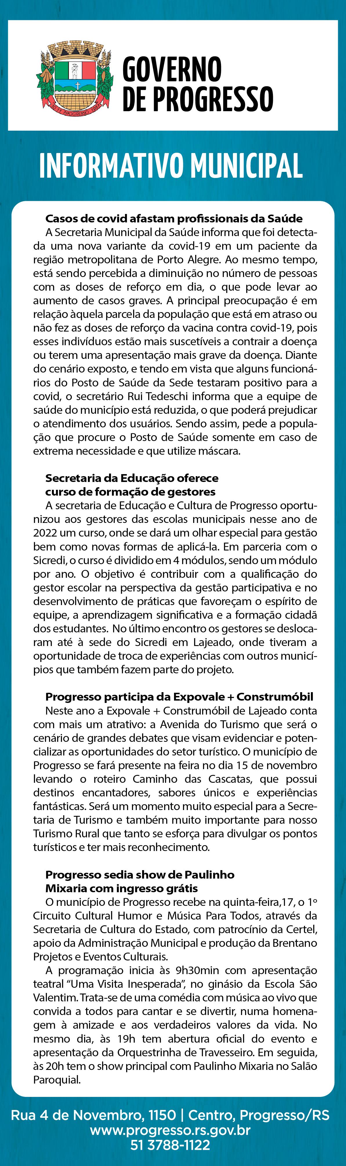 saúde e promover um momento de descontração para toda popu lação”, destaca o prefeito Paulo Bergmann (MDB).