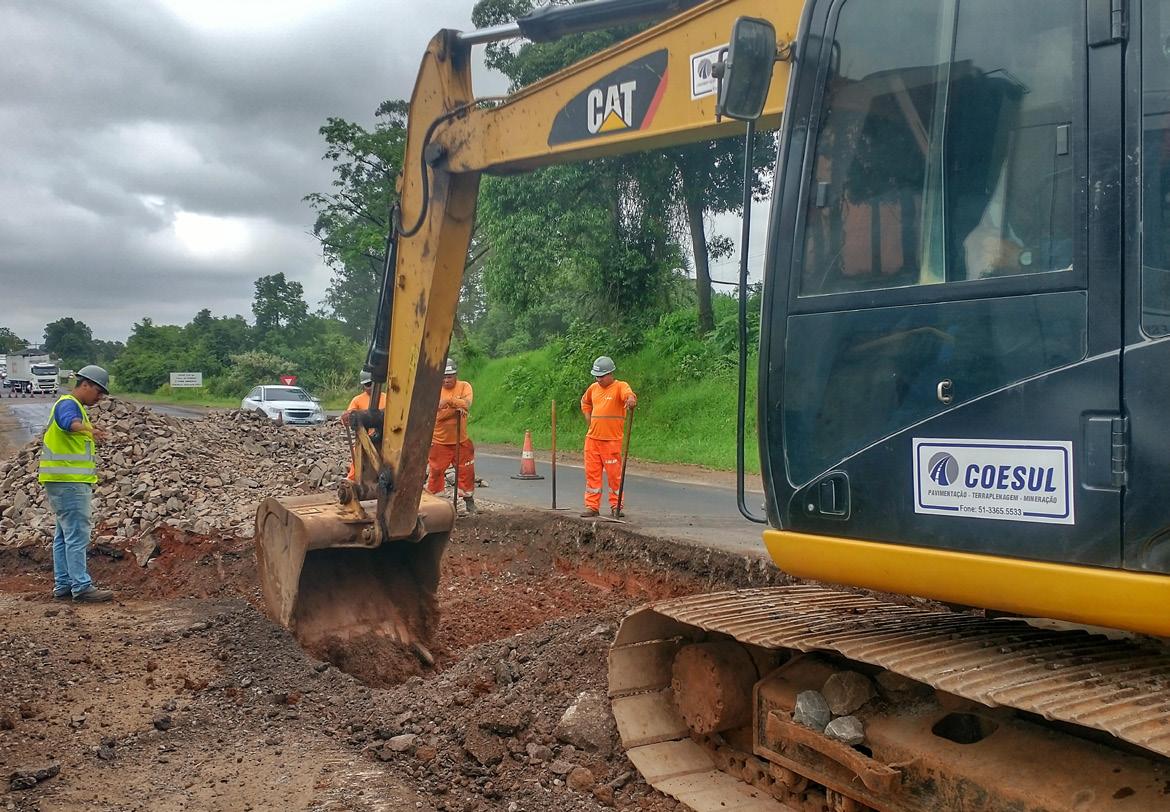 Em virtude da intensa movi mentação de maquinários e tra balhadores, o trânsito opera em meia pista no trecho. É preciso estar atento às sinalizações e res peitar os limites de velocidade da rodovia.