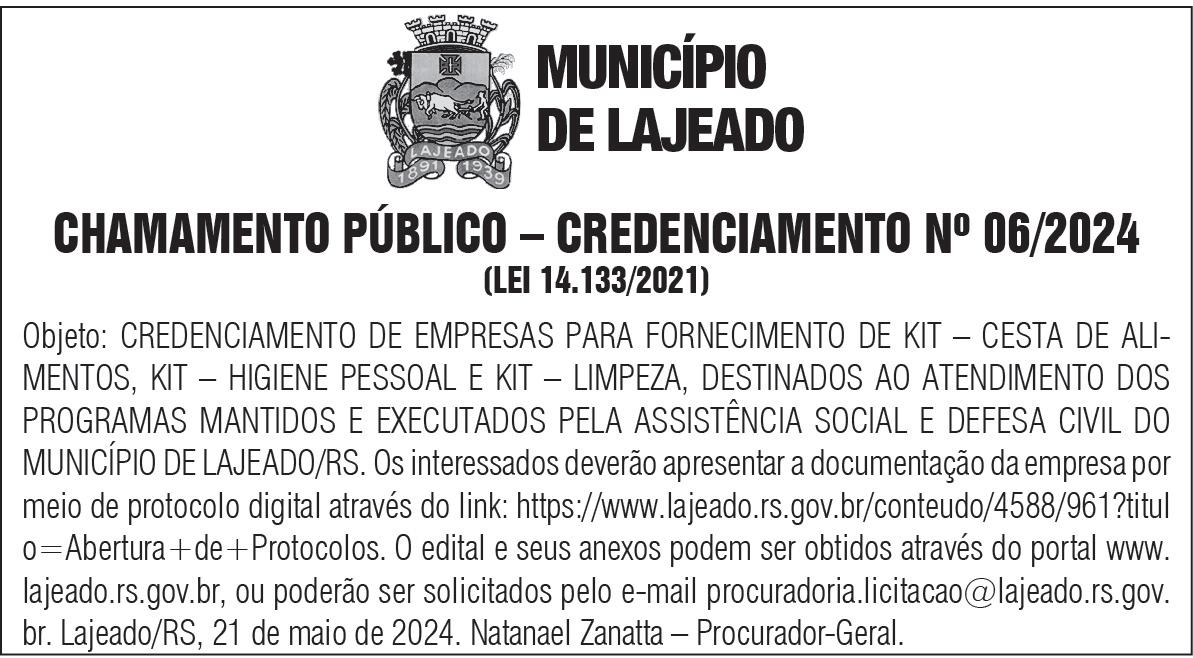 Pela necessária agilização do processo, foi autorizada a dispensa de licitação. Será feito um leilão. A abertura das propostas está marcada para a próxima semana, dia 27, às 10h. Os critérios de julgamento levam em consideração o menor preço, preferencial Microempresa (ME) e Empresa de Pequeno Porte (EPP).