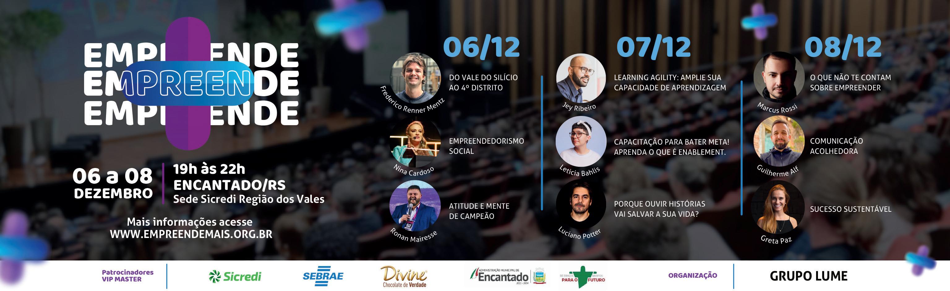 3 DE DEZEMBRO 11h – Talentos Locais – Danças contemporâneas 13h – Invernada Artística Municipal 14h – Os Bertussi 16h – Banda Choppão