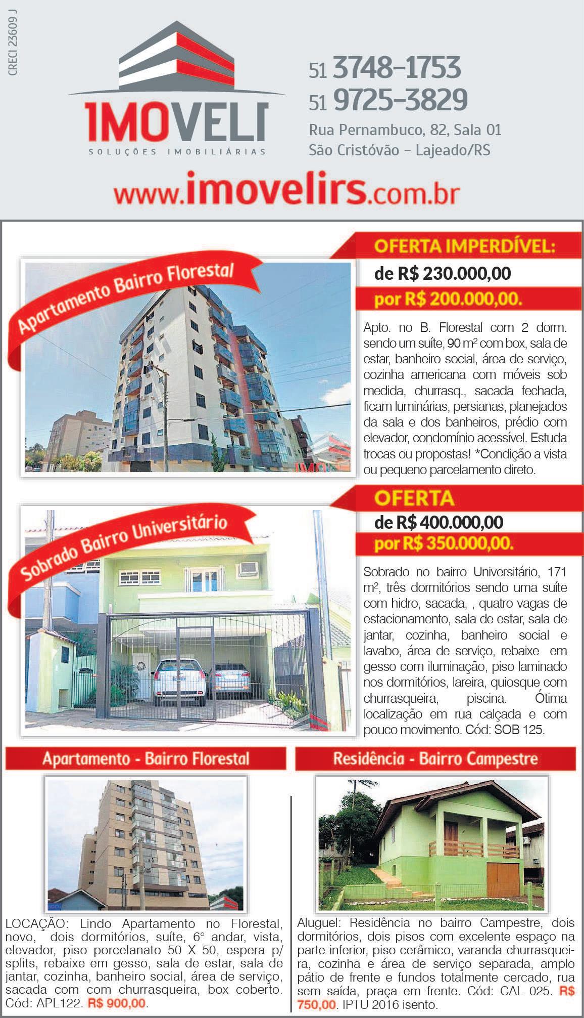 LAJOPISOS - Av. 1 Oeste, 397 - Centro administrativoTeutônia. E-mail: lajopisos@ hotmail.com Contato: Clécio Dullius (51)9982-0186 ou (51)3762-2007/3762-3352
