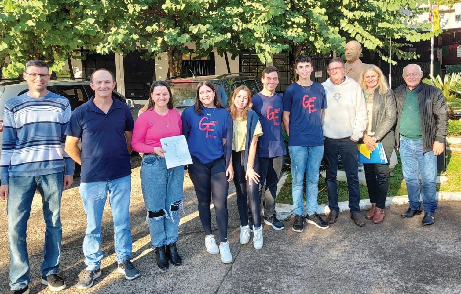 Um grupo de alunos da turma 212 do 1º ano do ensino médio da escola estadual Gomes Freire de Andrade, sob orientação do professor Claudemir Von Muhlen, apresentaram ao Poder Executivo nessa segunda-feira, 3, o Projeto de Pesquisa para Mostra Científica, desenvolvido em sala de aula, sobre Energia Solar no município de Teutônia.