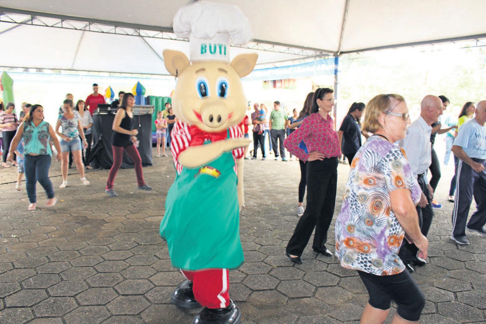 Buti tira muitas fotos e entrega material de divulgação da Suinofest. No dia 9, ele fez a maior festa em Ilópolis. A 15ª edição da Suinofest será realizada nos dias 3, 4, 5, 10, 11 e 12 de junho no Parque João Batista Marchese, em Encantado. O evento é realizado pela ACI-E em parceria com Executivo e Legislativo. A organização é da Lume Eventos.