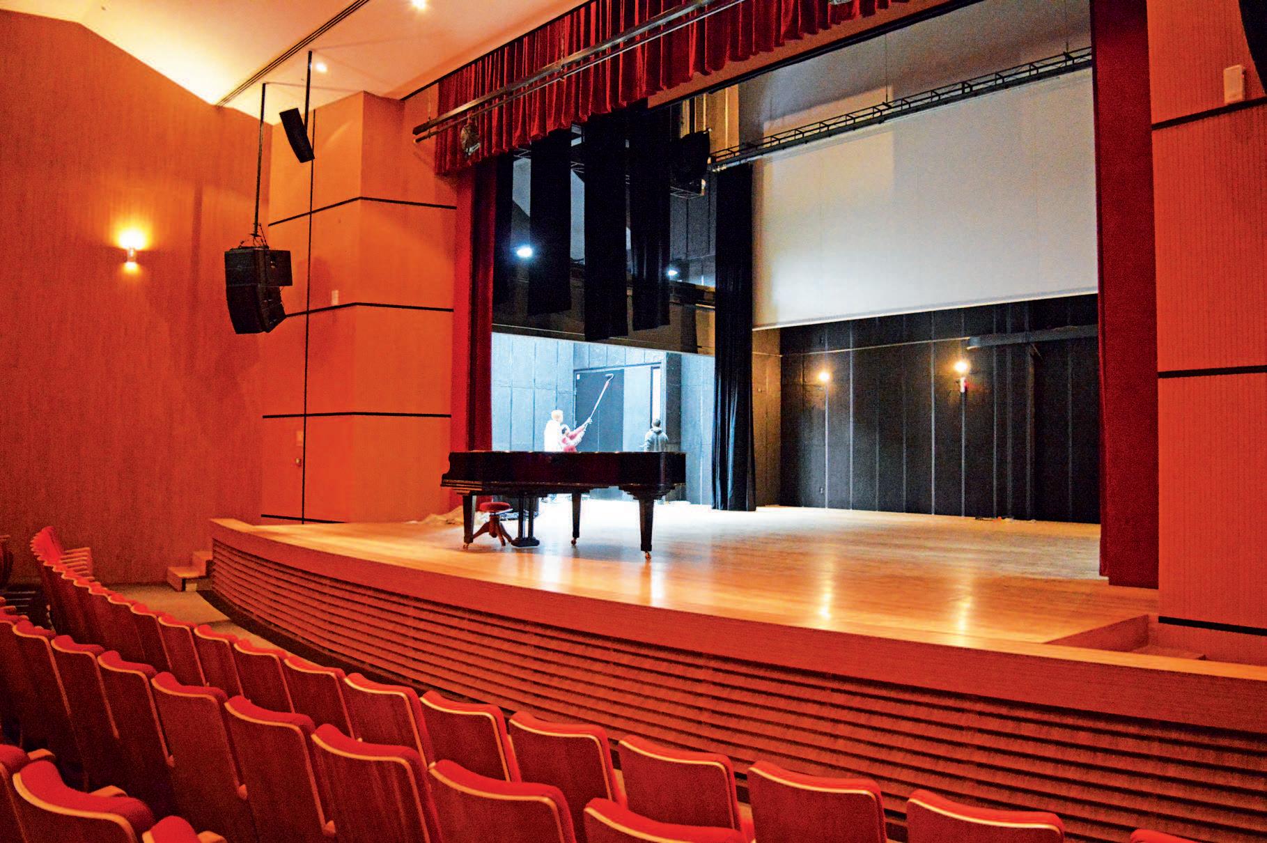 O espaço para apresentações tem uma área de quartelada com 25 peças removíveis, além de um elevador de orquestra com 25 metros quadrados.